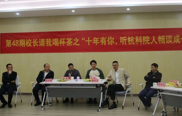 2022年是杭州科技职业技术学院首届高职学子毕业十年。11月5日,学校隆重举行首届校友返校日活动,远游学子回到母校,畅叙师生情谊,共谋母校发展。当天下午,“校长请我喝杯茶”校友返校日——“十年有你,听杭科院人畅谈成长故事”举行,师生代表们欢聚一堂,谈母校变化,聊母校记忆,展校友情怀,在茶叙中书写与杭科院的点滴故事。党委书记谢列卫,校长温正胞,校党委副书记寿伟义,校党委委员、副校长、校友总会会长赵悦林出席活动,18位校友代表和5位教师代表参加。