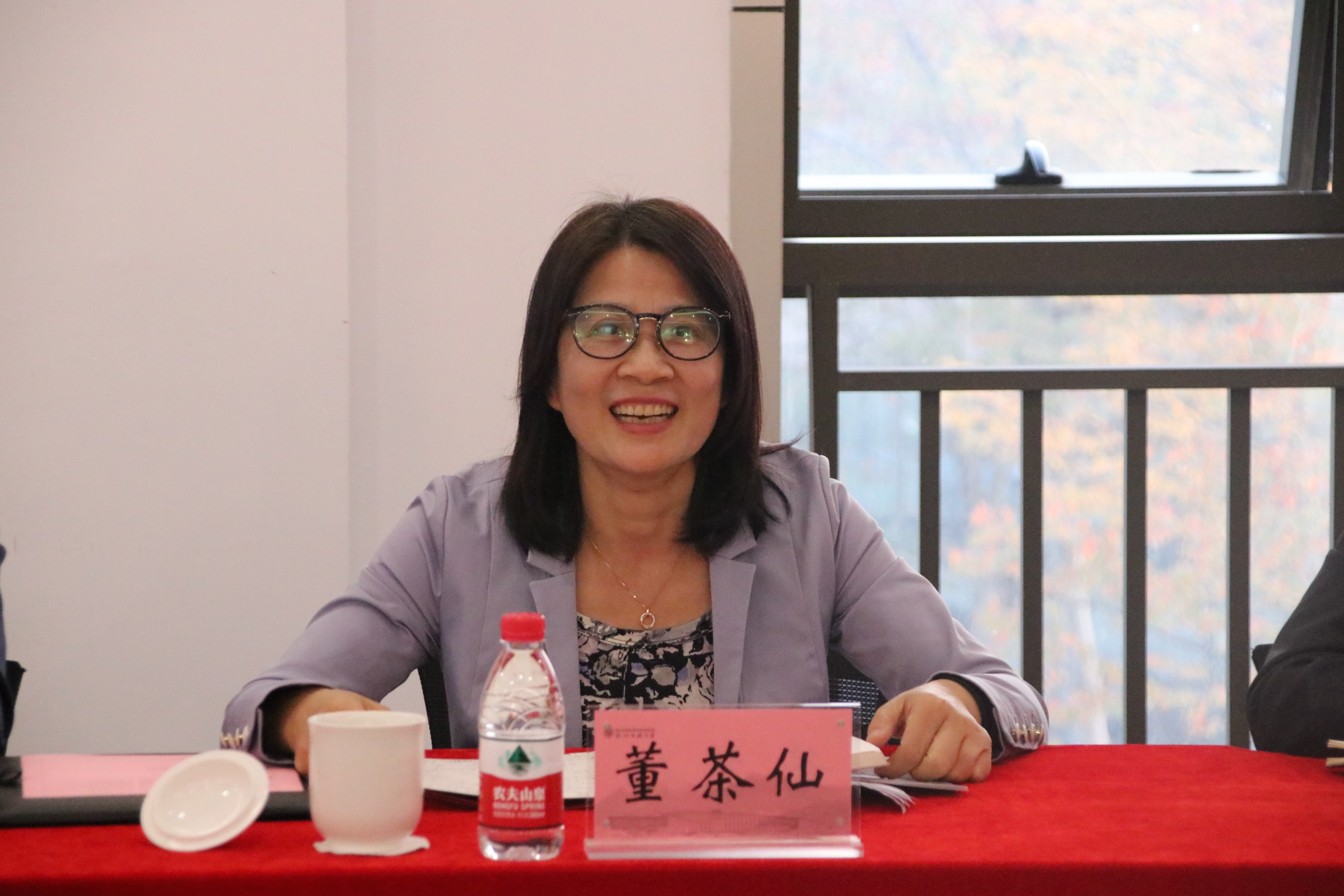 湘师89届校友、萧山区人大常委会社会建设工委主任、区政协常委、区党外知识分子联谊会首任会长董茶仙对学校的热情接待表示感谢,对我校校园文化建设和学陶师陶取得的丰硕成果给予了充分肯定,并详细介绍了“百年湘师 薪火永续”公益项目及喈喈歌咏团、醒民剧团、志愿讲解团和校友寻访团的工作开展情况。董茶仙指出,广大湘师校友和萧山人民充满深厚的湘师情结,“回到母校倍感亲切”,希望和杭科院持续密切联系,找到合作切入点,共同推进湘师办学精神的发扬和陶行知教育思想研究。
