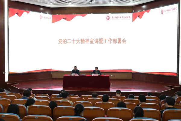 11月22日,我校召开党的二十大精神宣讲暨工作部署会。党委书记谢列卫为师生宣讲党的二十大精神,党委副书记寿伟义作学习宣传贯彻党的二十大精神工作部署。宣传部、各党总支、直属党支部负责人,智能制造学院、马克思主义学院全体党政班子、师生代表参加。