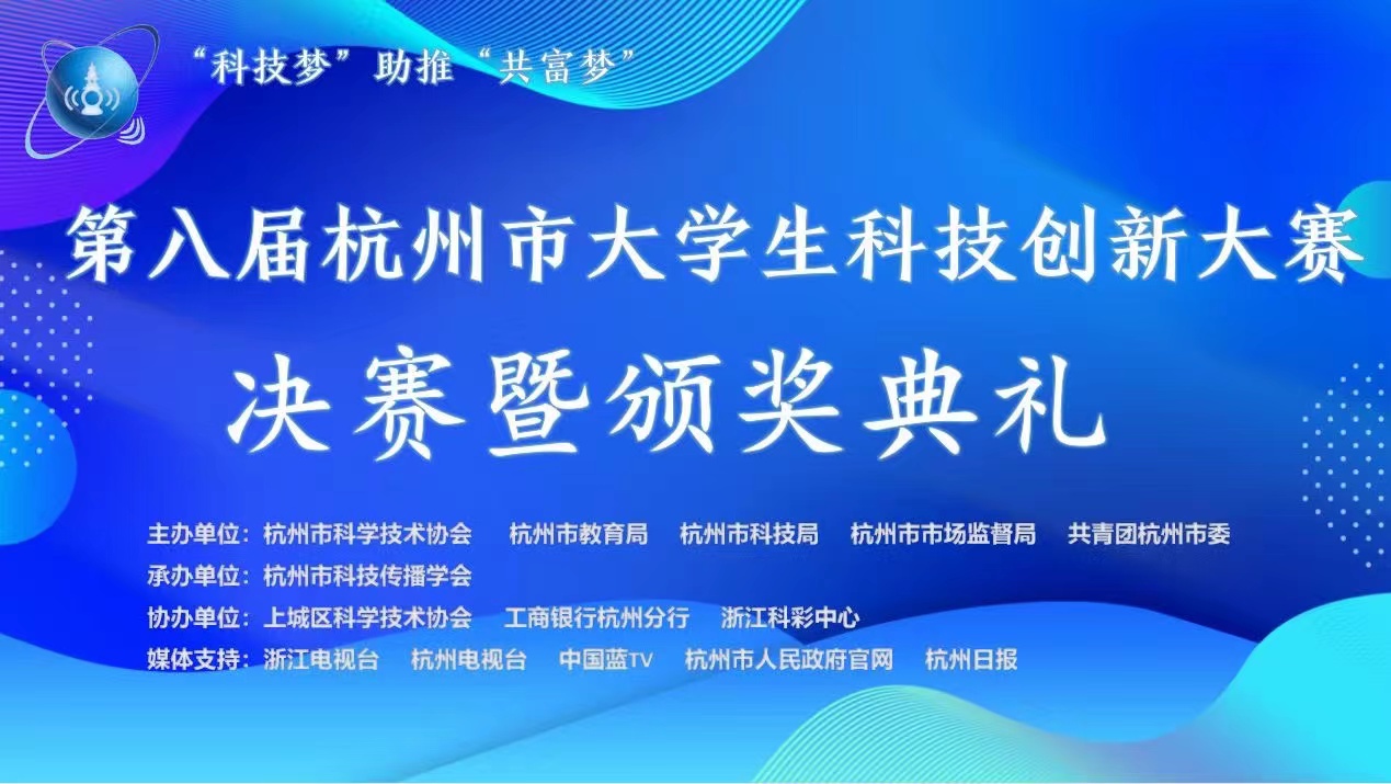 第八届杭州市大学生科技创新大赛由杭州市科学技术协会、市教育局、市科学技术局、市市场监督管理局、共青团杭州市委等联合主办,以“‘科技梦’助推‘共富梦’”为主题,来自浙江工业大学、杭州电子科技大学、浙江理工大学、浙江农林大学、杭州职业技术学院等本专科院校的150余项作品参赛,作品涵盖电子信息、化工环境与生物医药、机电工程设计、智能制造等多个领域。
