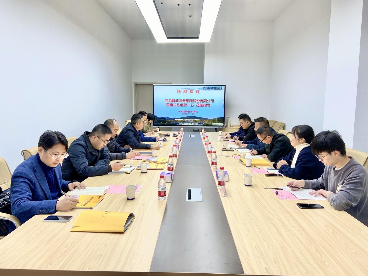 11月30日,亚龙智能装备集团股份有限公司董事长陈继权一行来我校大江东校区洽谈合作事宜。党委书记谢列卫,校长温正胞,党委委员、副校长赵悦林、潘建峰出席会议,相关部门负责人参加。