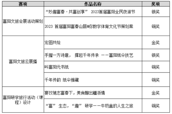 近日,浙江省第十二届会展策划创意大赛落下帷幕。我校一举斩获一等奖6项、二等奖7项、三等奖9项的重磅成绩,还收获了富阳文旅赛道2金2银4铜,总成绩位列本专科院校第一名。在去年收获12个奖项,成为大赛“黑马”赢家的基础上,我校再次实现全新突破。