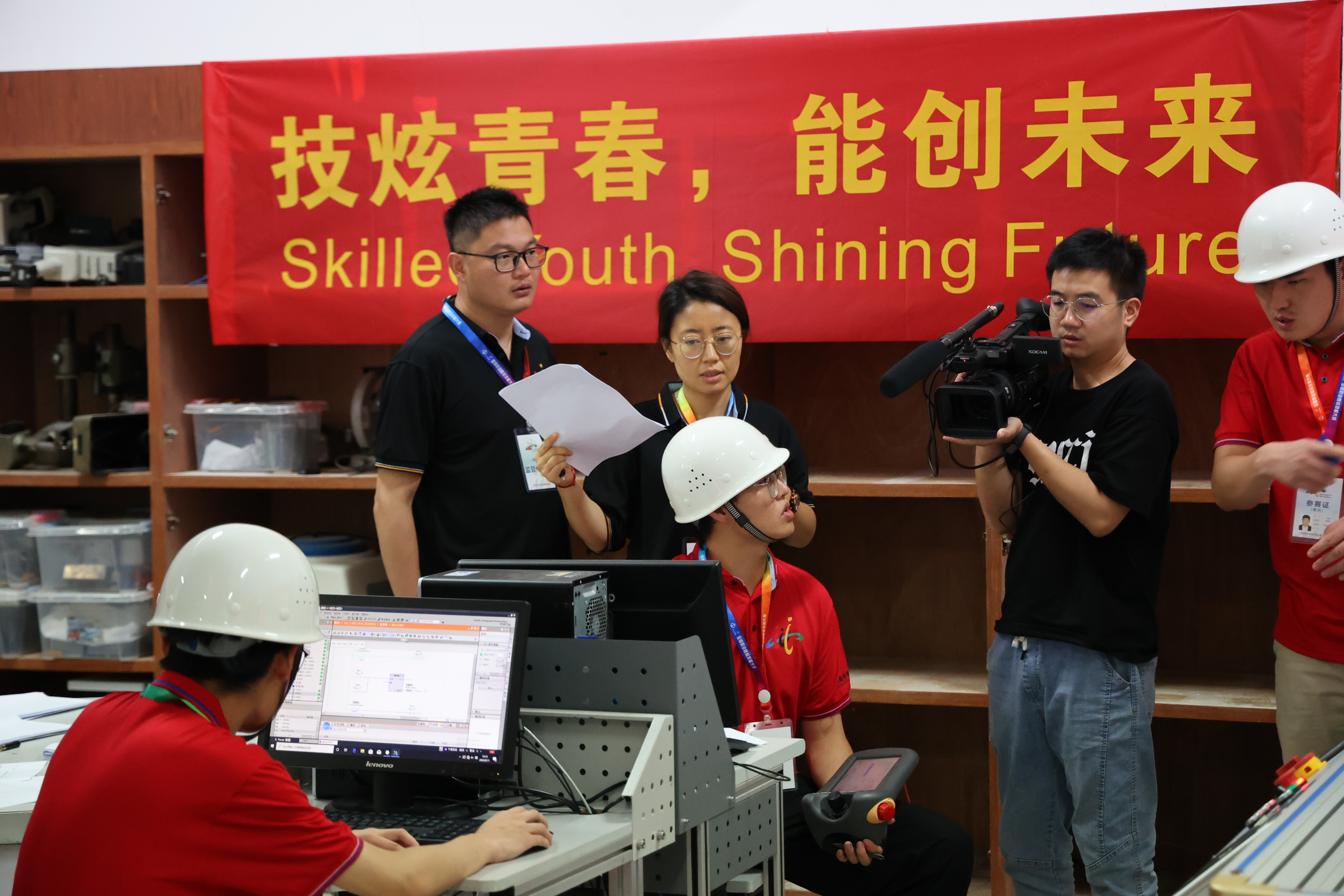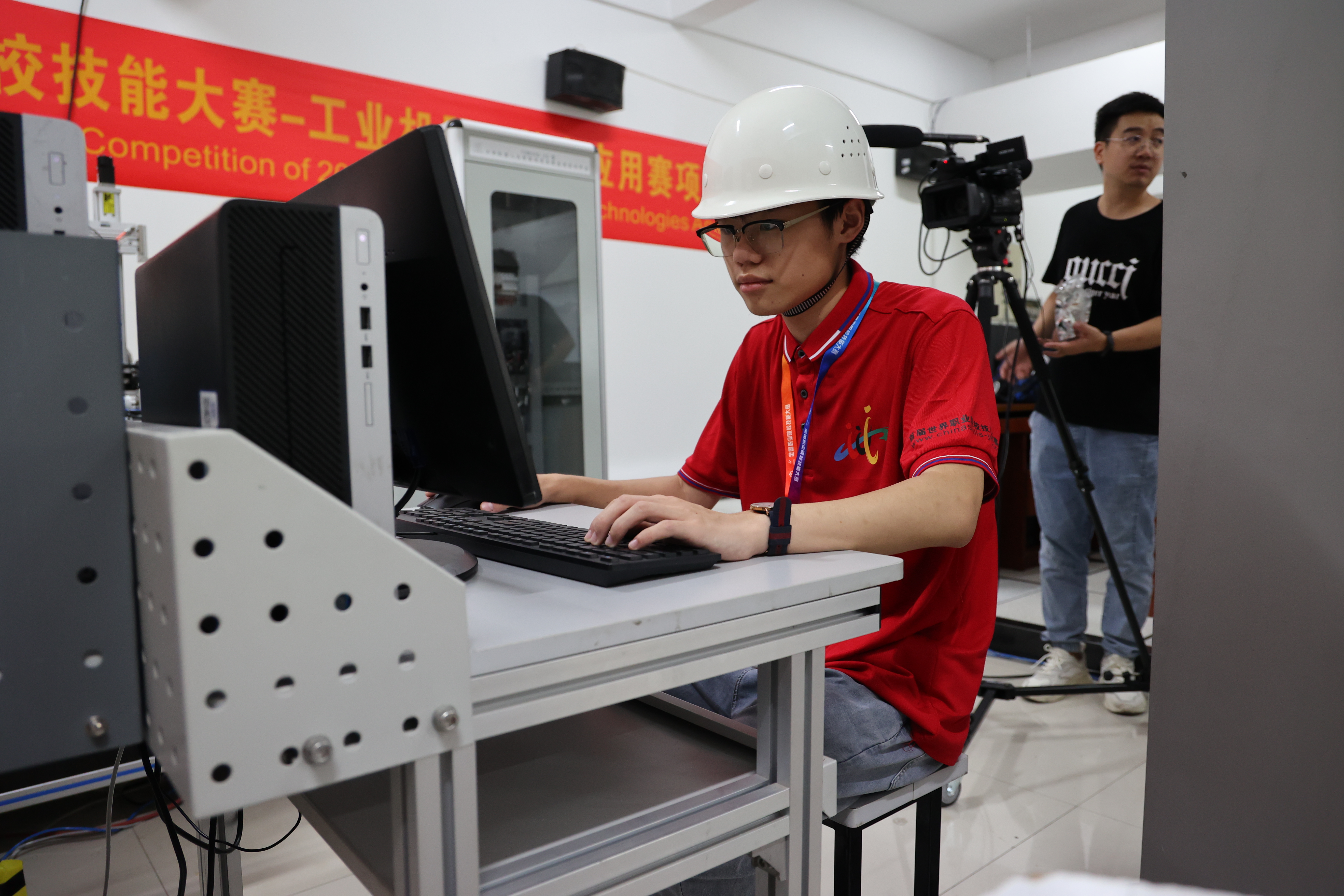 大赛中,翁钲栋是少见的大一学生,在电脑面前不断对PLC程序进行编写调试,动作熟练而细致,年纪轻轻就展现出了不一般的天赋和能力。“小时候在电视上看到机器人,我就产生了别样的喜爱”,翁钲栋从小就爱摆弄鼓捣各类电子设备,“拆拆装装”是他日常最大的乐趣,“高考前我就认定了智能制造类专业,把爱好变成专业真的很幸福。”