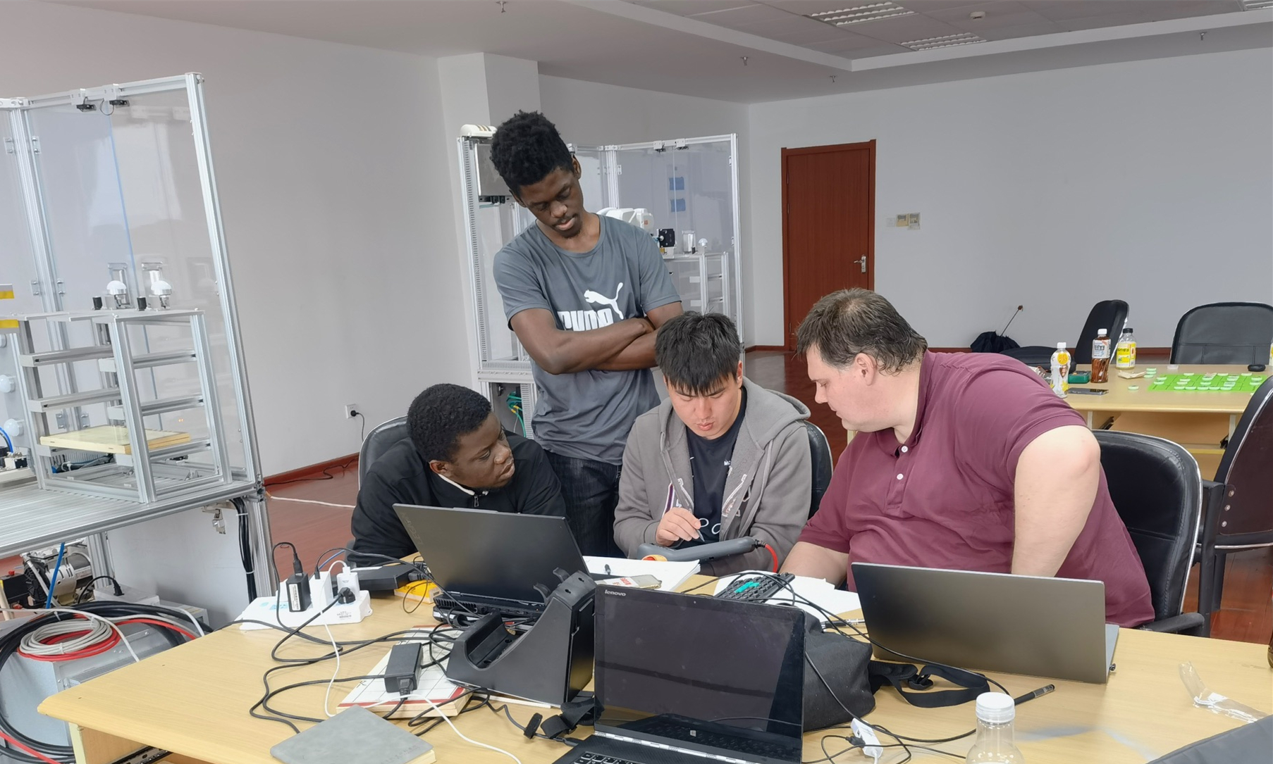 虽然来到杭科院工作刚满一年,但周昭昭在机器人技术领域里早已经是一名“老师傅”。离开工作多年的知名机器人技术企业来到高校,周昭昭想把他对机器人多年的热爱和项目实战经验“传道受业”给学生,“我想运用我的职业背景,把产业知识和实用技术搬进课堂,教给更多的年轻人。”作为三人团队中的指导教师,周昭昭在触摸屏和视觉相机编程以及控制柜气路、电路安装方面做了大量工作。
