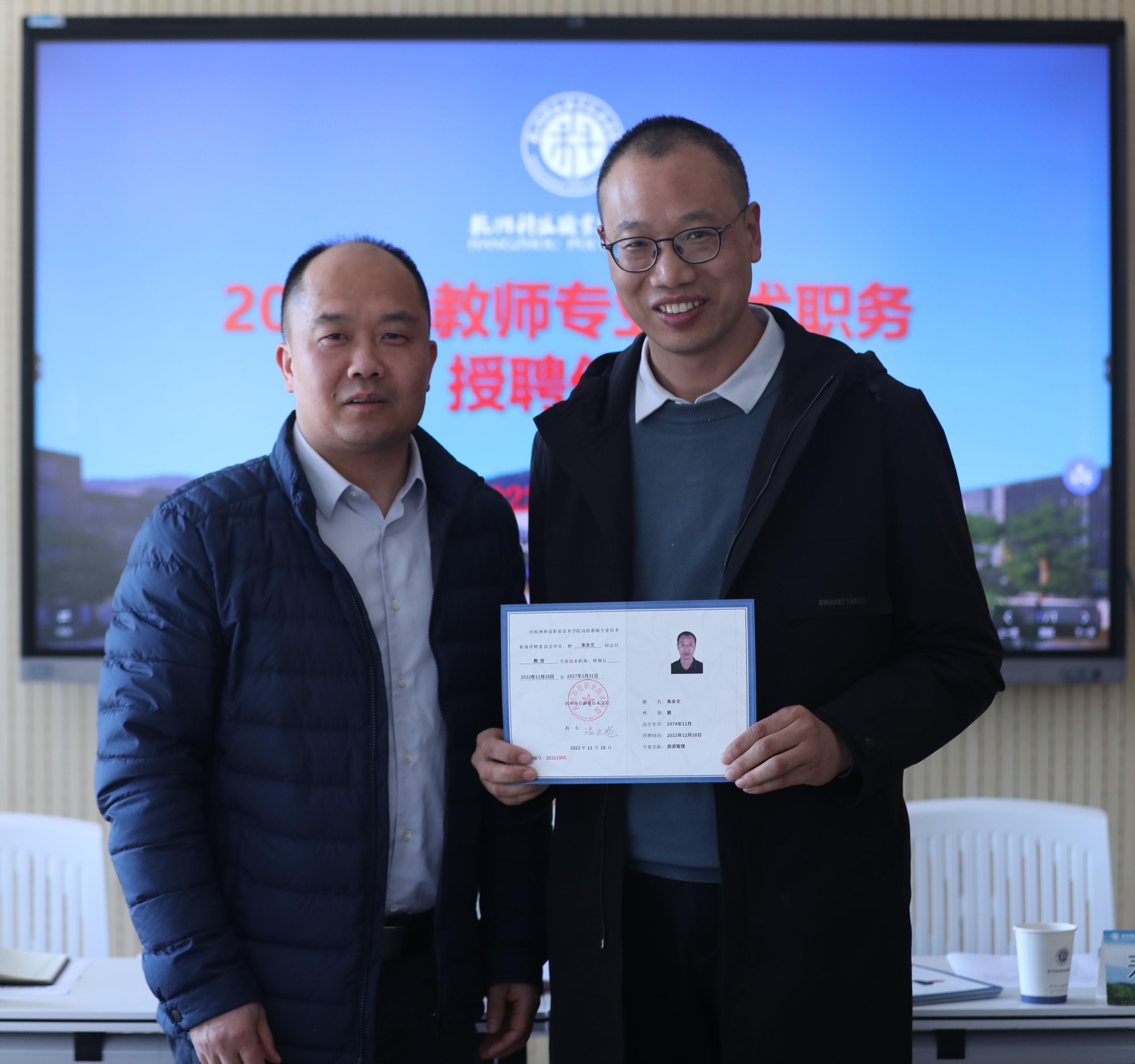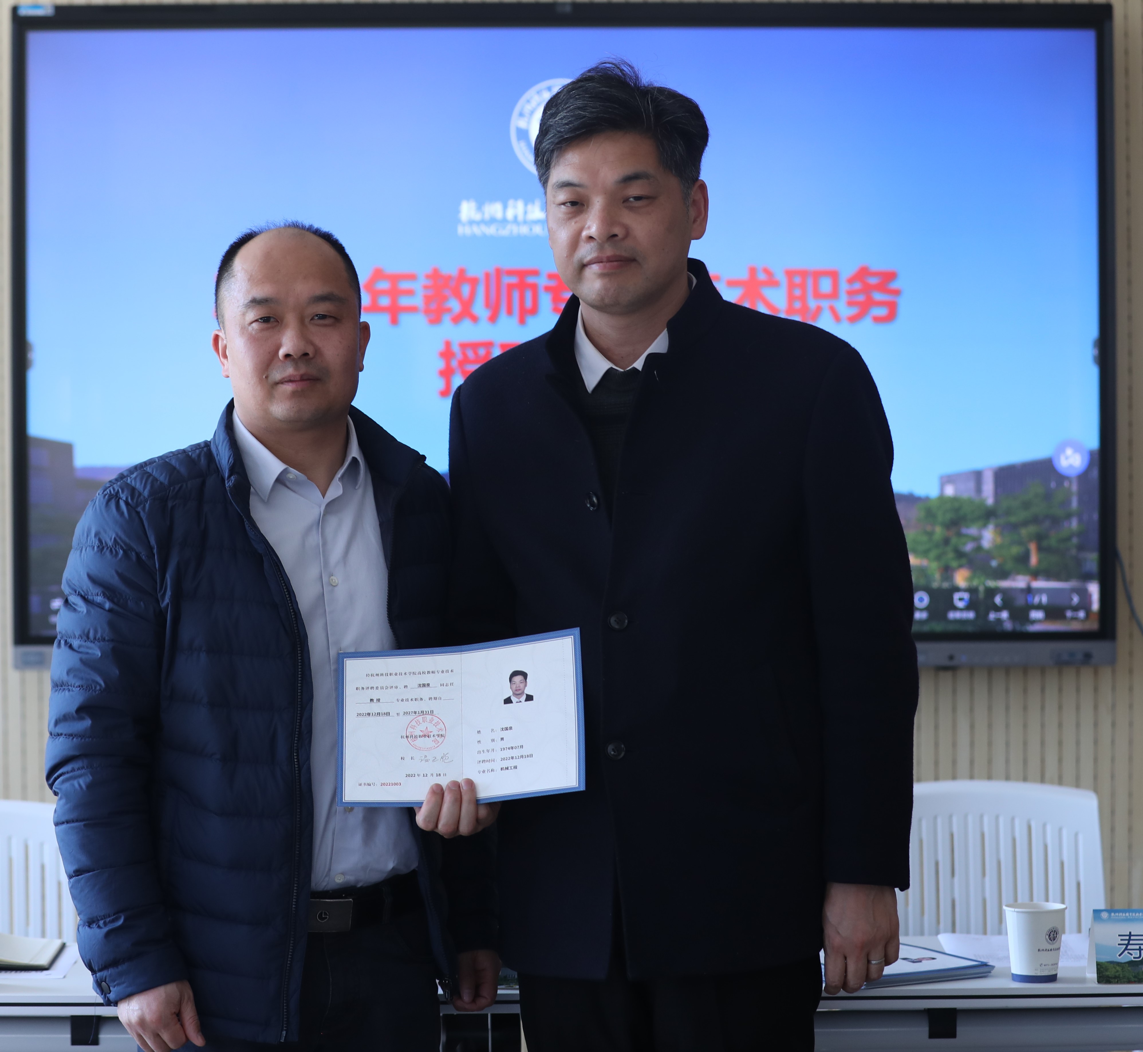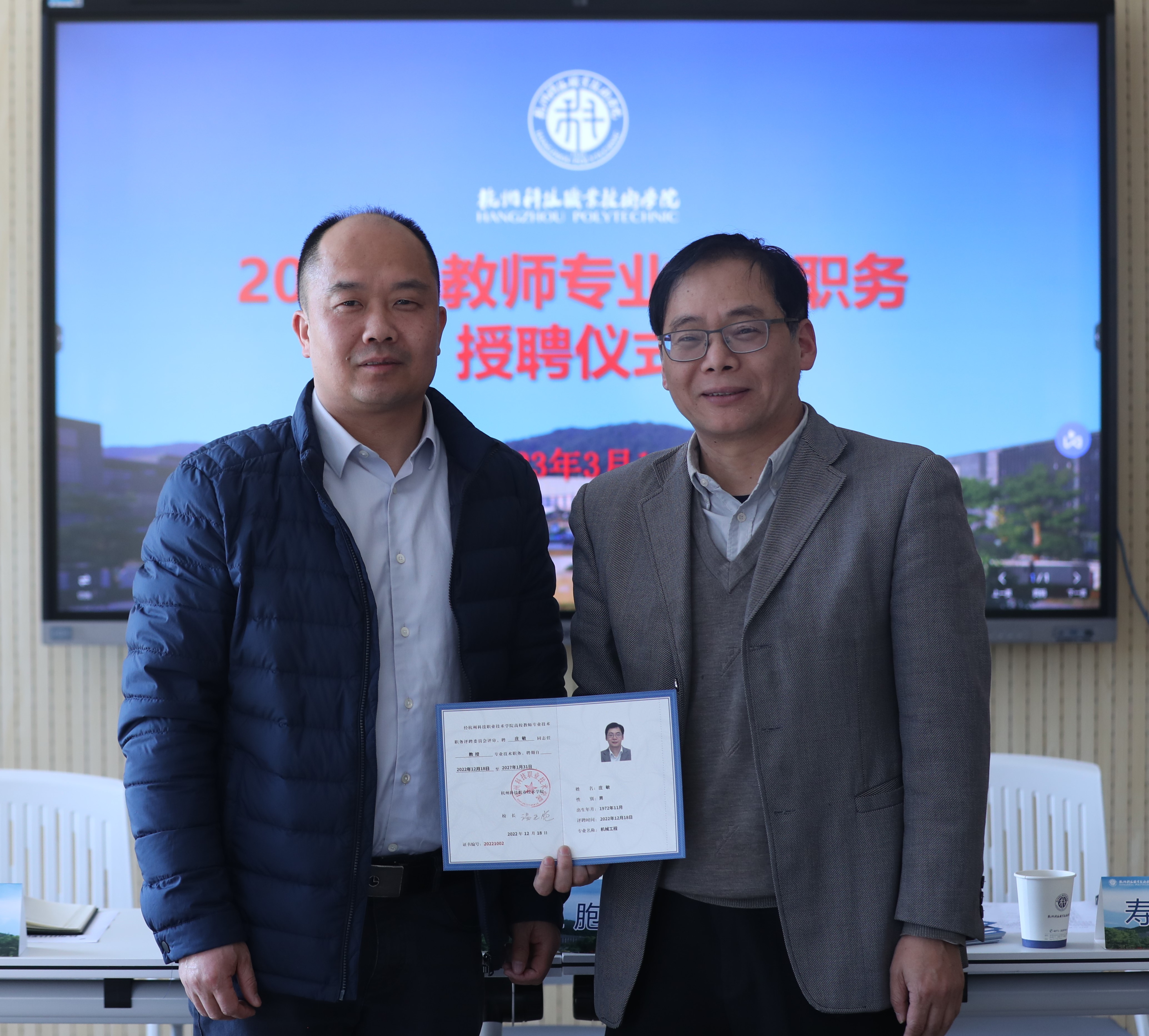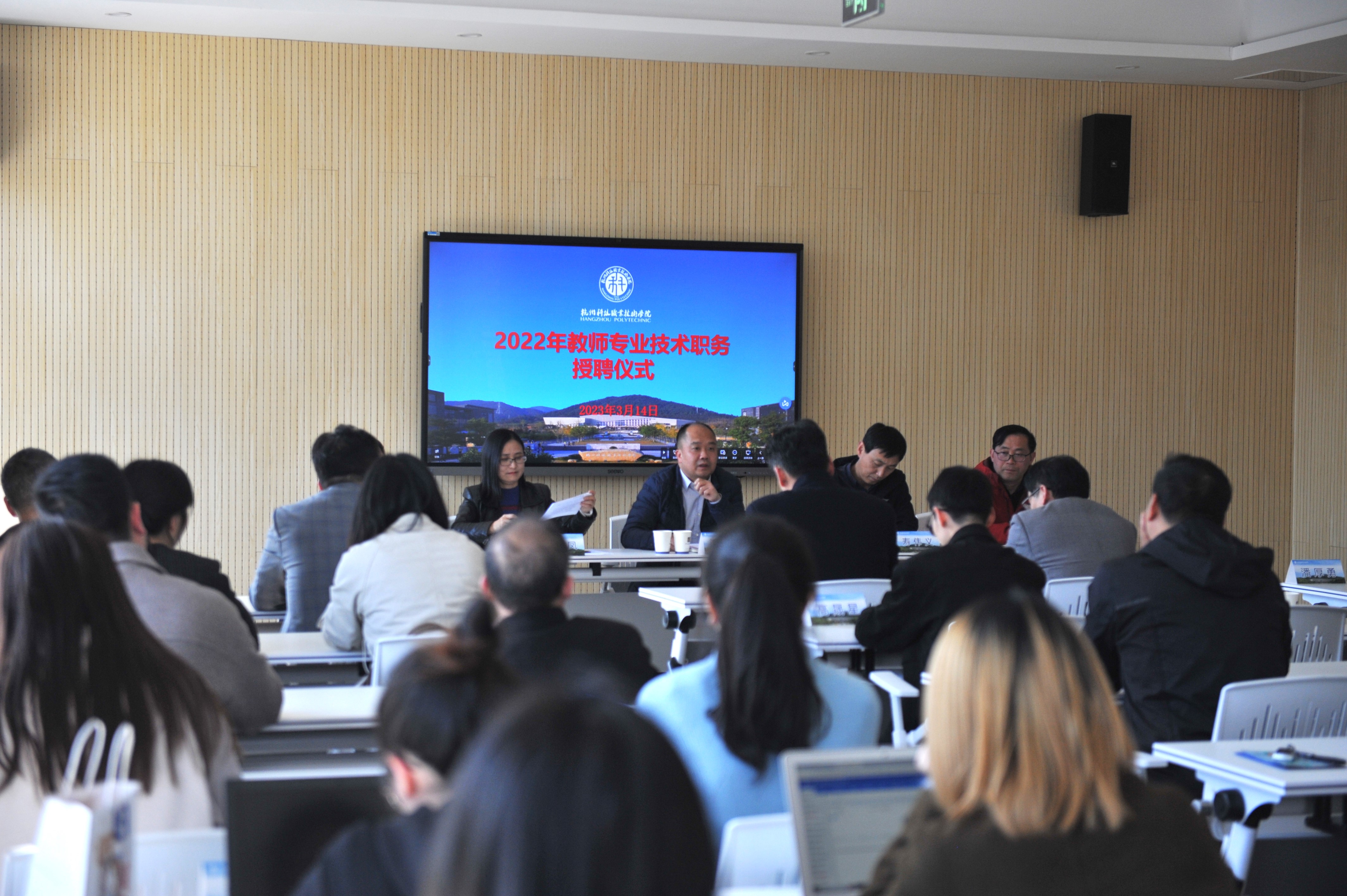 3月14日,我校举行2022年教师专业技术职务授聘仪式。校长温正胞为晋升教师颁发聘任证书并讲话,党委副书记寿伟义宣读专业技术职务聘任文件。教务处、学生处、人事处、科技处负责人及2022年晋升专业技术职务的教师参加授聘仪式。