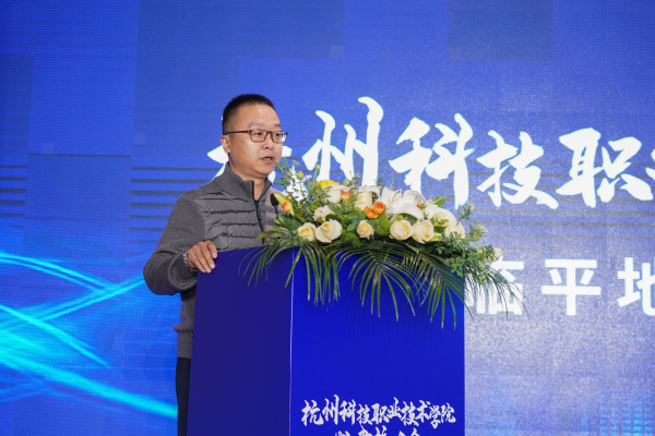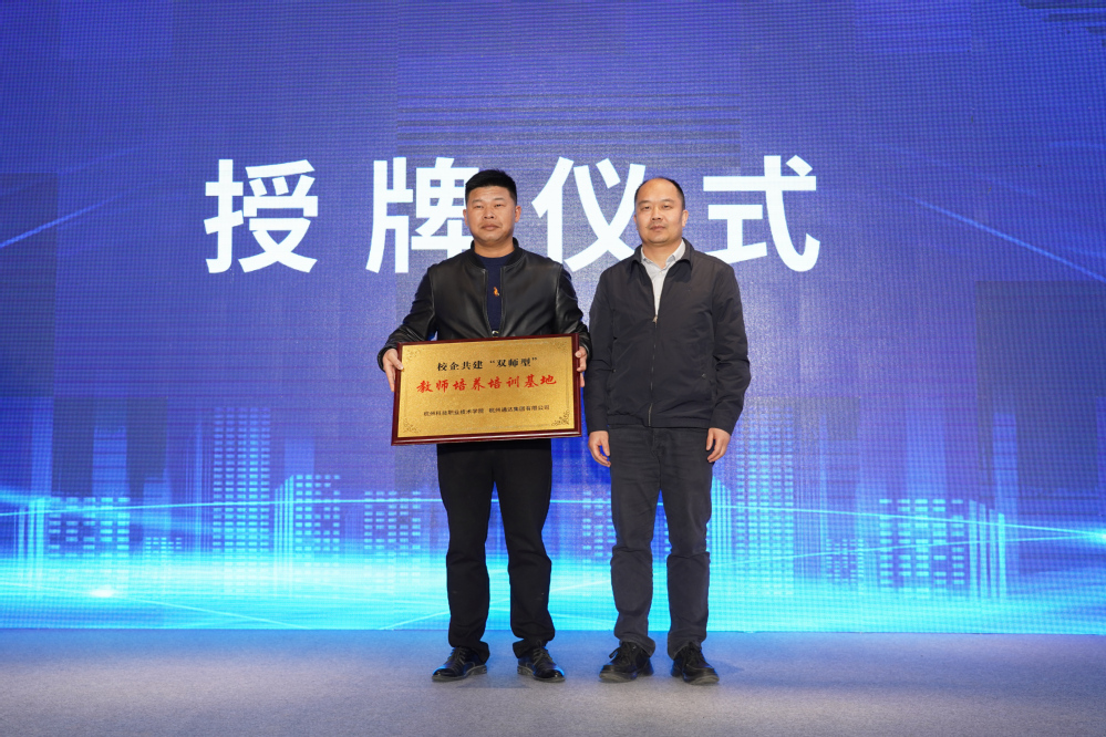 温正胞为共建“双师型”教师培养培训基地的校友企业授牌,并与余杭临平校友联谊会会长共同揭牌,宣布余杭临平地区校友工作站成立。