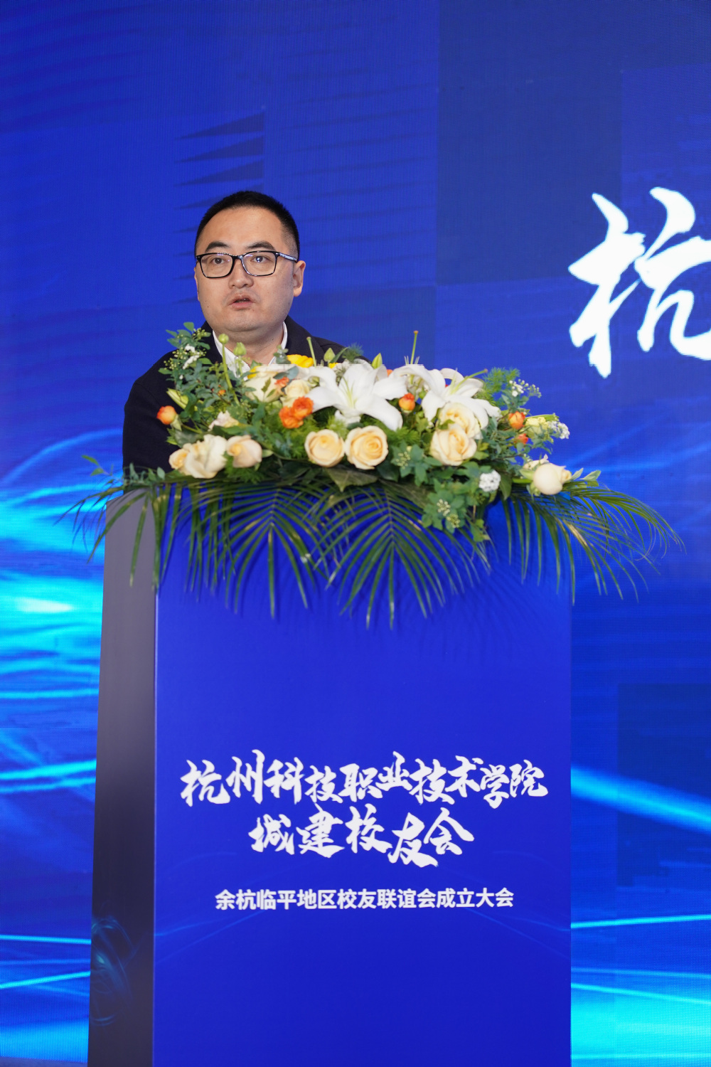 绿城浙禹置业有限公司总经理邵枫、政通建设管理有限公司董事长钱赟作为优秀校友代表发言。他们感谢各位校友对校友分会、校友联谊会工作的支持,希望余杭临平两地的校友携手起来,共同努力,为母校争光添彩。