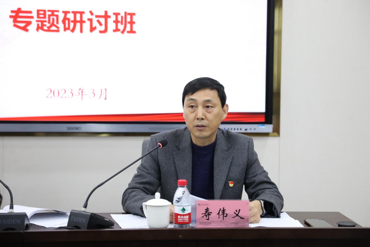 寿伟义指出,党的二十大是在全党全国各族人民迈上全面建设社会主义现代化国家新征程、向第二个百年奋斗目标进军的关键时刻召开的一次十分重要的大会。学习宣传贯彻党的二十大精神,是当前和今后一个时期的首要政治任务。开展此次集中培训,是我校学习宣传贯彻党的二十大精神的一项重要举措,旨在帮助中层干部深学细悟党的二十大精神,全面准确领会党的二十大精神的核心要义、精神实质和实践要求,深刻领悟“两个确立”的决定性意义,坚决做到“两个维护”,及时用党的二十大精神统一思想、统一意志、统一行动,切实把力量和智慧凝聚到实现党的二十大确定的各项任务上来、凝聚到杭科院推进“两步走 创一流”的事业发展上来。寿伟义对参加本次研讨班的全体中层干部提出四点要求:一要真学深学,入脑入心。坚持学深学透,准确把握精髓要义,切实在悟透践行上见实效;二要学思结合,融会贯通。深入贯彻《关于在全党大兴调查研究的工作方案》,坚持联系学、贯通学、系统学,立足杭州及学校工作实际开展学习研讨,做到学思用贯通,知信行统一;三要知行合一,抓好落实。立足学校和本部门工作实际,聚焦关键,明确重点,切实把党的二十大作出的决策部署转化为杭科院“创一流”的工作思路、具体对策和实际行动,不断增强争先创优的行动自觉;四要严肃纪律,端正学风。严格遵守专题研讨班的相关纪律要求,“静下心来、认真好学、刻苦钻研”,确保学有所获,学有所成。