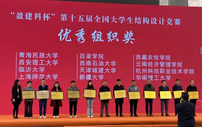 3月22日至26日,2022第十五届全国大学生结构设计竞赛在太原理工大学举行。我校城市建设学院院长金波带队“出征”,经过三天的激烈角逐,由于正义、李中培老师指导的张文辉、孙梓豪、马玲瑶团队凭借作品《浙里筑梦龙城》荣获一等奖,创造了我校在该项赛事中的最好成绩,实现了历史性突破。我校还获评优秀组织奖。