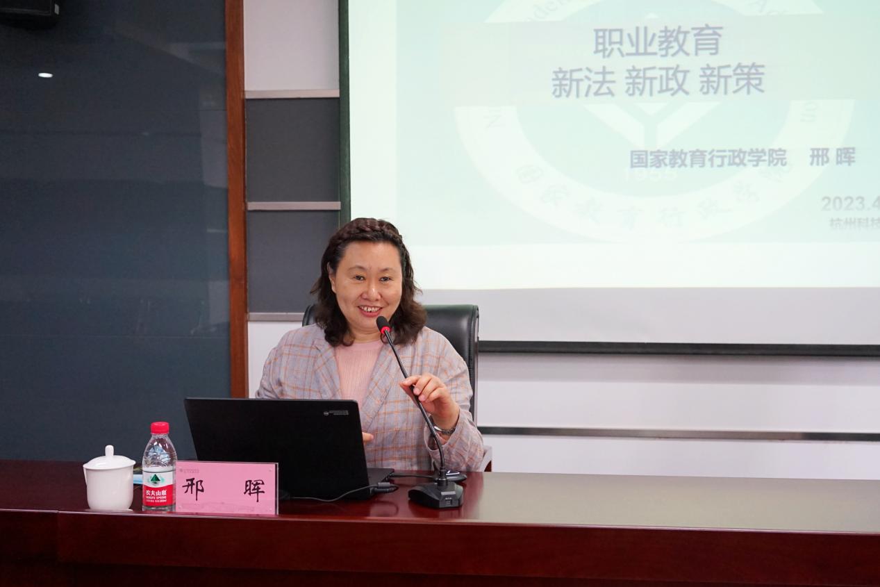 4月19日,国家教育行政学院学术委员会、职业教育研究中心主任邢晖来校调研指导并作专题讲座。党委书记谢列卫、校长温正胞等校领导出席,全体中层干部、教师代表参加。