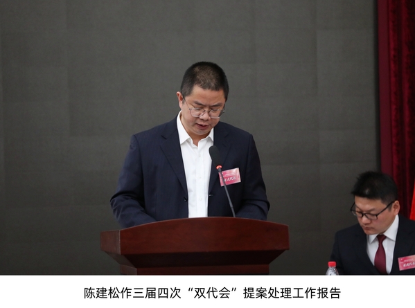 大会听取了三届“双代会”提案工作小组组长陈建松作的三届四次“双代会”提案处理工作报告。三届四次“双代会”共收到代表有效提案38件,经大会主席团审议立项20件,并案4件,工作建议12件,不立项2件。提案交办会明确立案提案牵头落实部门和工作建议沟通反馈部门,切实做到件件有落实,事事有回应。经过各部门共同努力,20件立案提案均已办结,办结率100%,满意率100%,12件工作建议均与提案人进行沟通反馈,提案工作对促进学校工作成效明显。