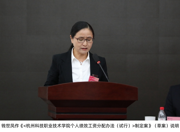 大会听取并审议了计划财务处处长徐磐作的学校财务工作报告,听取并审议人事处处长钱世凤作的《<杭州科技职业技术学院个人绩效工资分配办法(试行)>制定案》(草案)说明,大会还审议了工会财务工作报告、工会经审工作报告。
