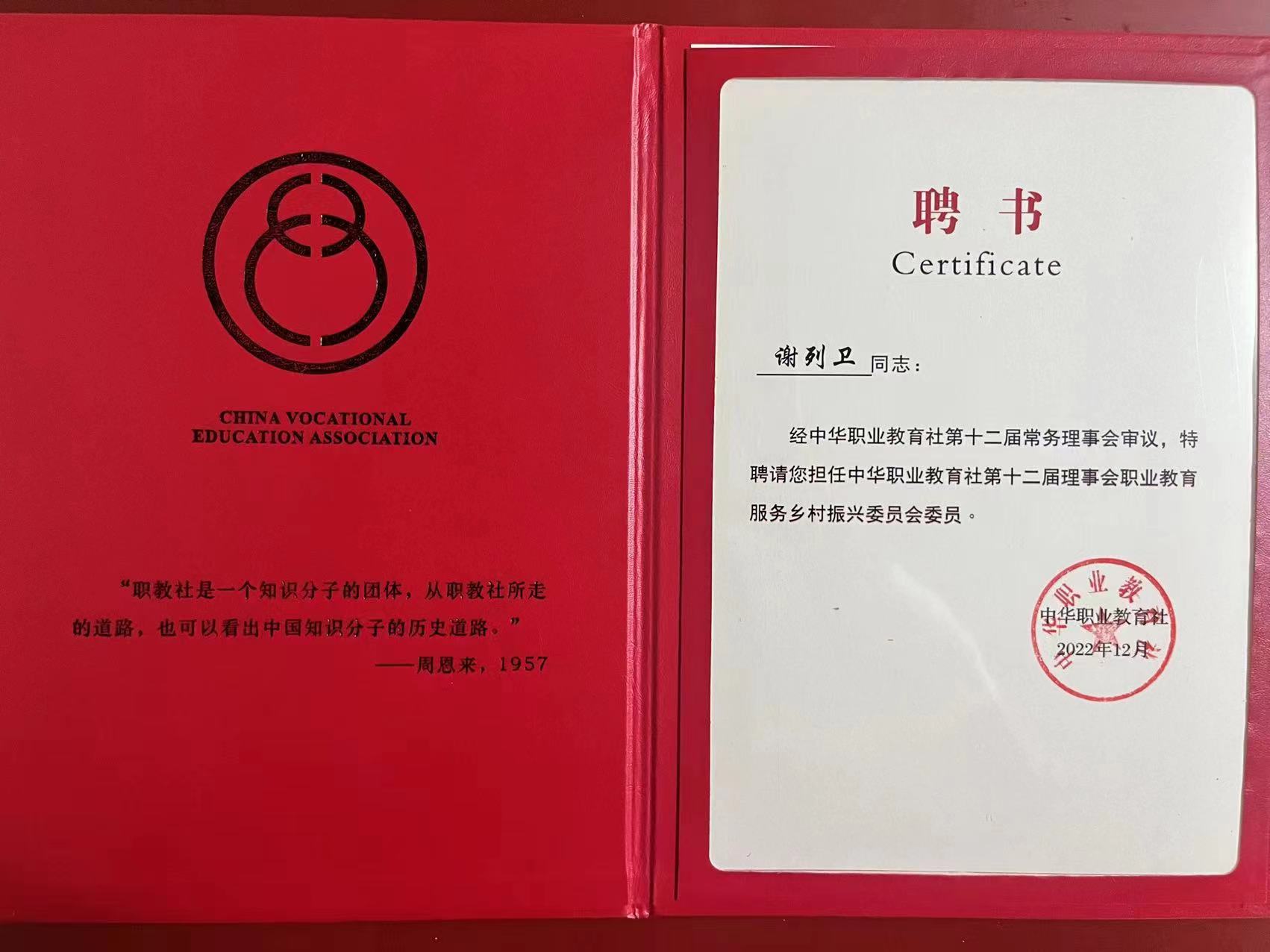 4月27日,中华职业教育社以线上线下相结合的方式召开职业教育服务乡村振兴委员会成立暨第一次工作会议,来自全国的40多所职业院校、有关行业企业协会的领导、专家、代表共100余人参加现场会。党委书记谢列卫获聘中华职业教育社职业教育服务乡村振兴委员会委员。