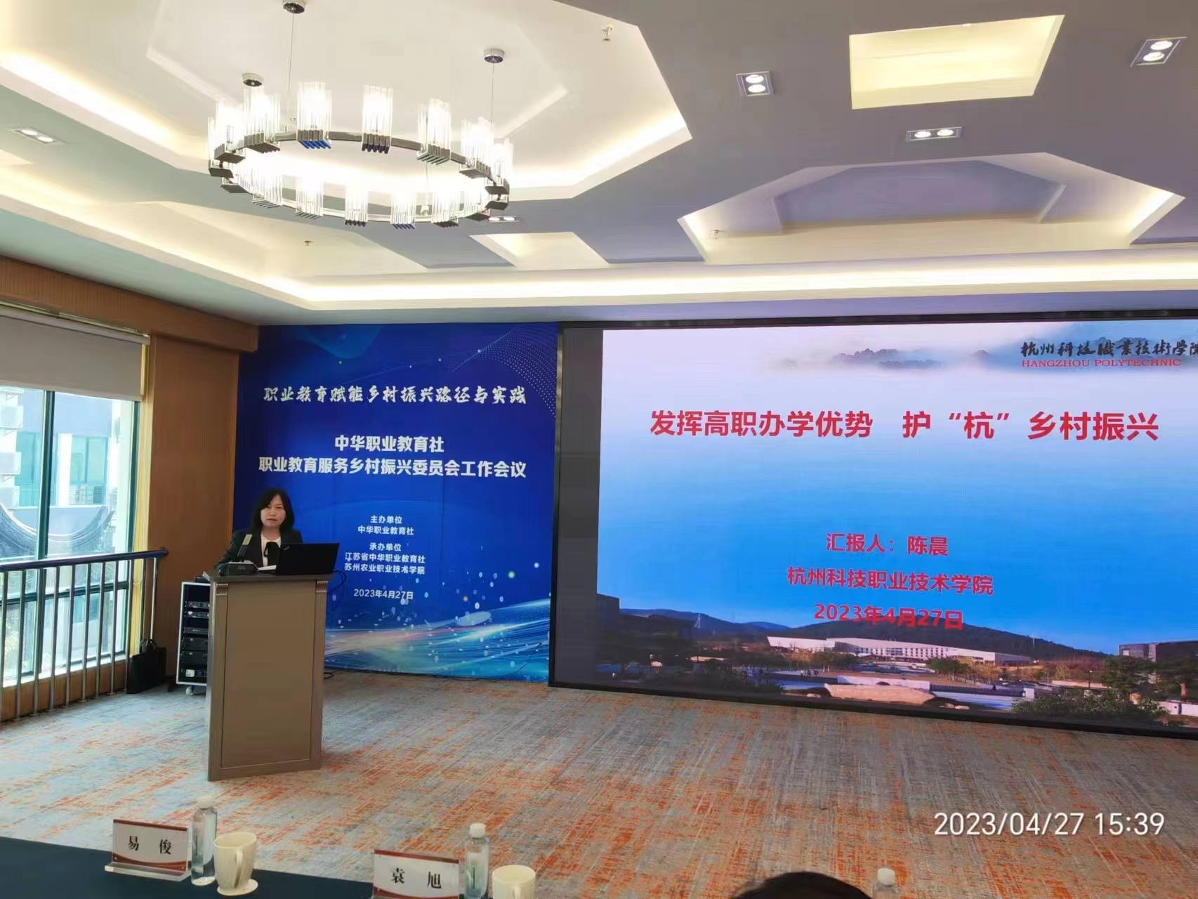 科技处(产学合作处)处长陈晨代表学校作了题为《发挥高职办学优势 护“杭”乡村振兴》的主题交流发言。她从学校发展历程、“杭州乡村振兴学院”的成立、功能定位、组织架构、工作成效、主要特色及典型案例等方面详细介绍了杭科院近年来在乡村振兴工作方面的具体做法与典型经验。陈晨表示,服务乡村振兴是践行初心使命的本质要求,也是学校提升社会服务能力的突破口,学校不断推进“乡村振兴”的广阔度与纵深度,多样多维多元探索,着力打造人才培养、政策研究、示范建设“三位一体”乡村人才培养高地,实现学校内涵建设和乡村共富的双向赋能,积极探索具有区域特色的乡村人才振兴“金字招牌”与杭科经验。