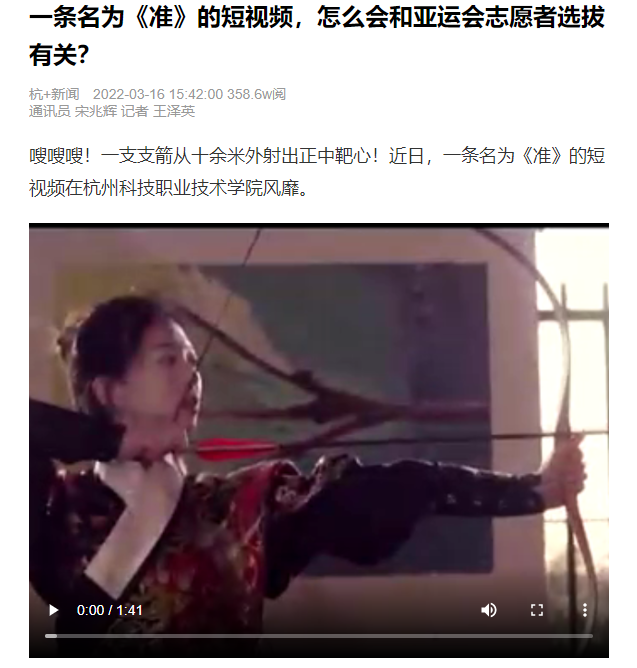 实践出真知,实践长真才。杭州亚运会的脚步越来越近,在校团委的指导下,商务管理学院团委精心组织亚运会志愿者面试选拔和培训工作。拍摄制作的亚运宣传片《准》,以射箭爱好者的视角生动传递精准规范的亚运会志愿者选拔工作理念,浏览量高达358.6万次。