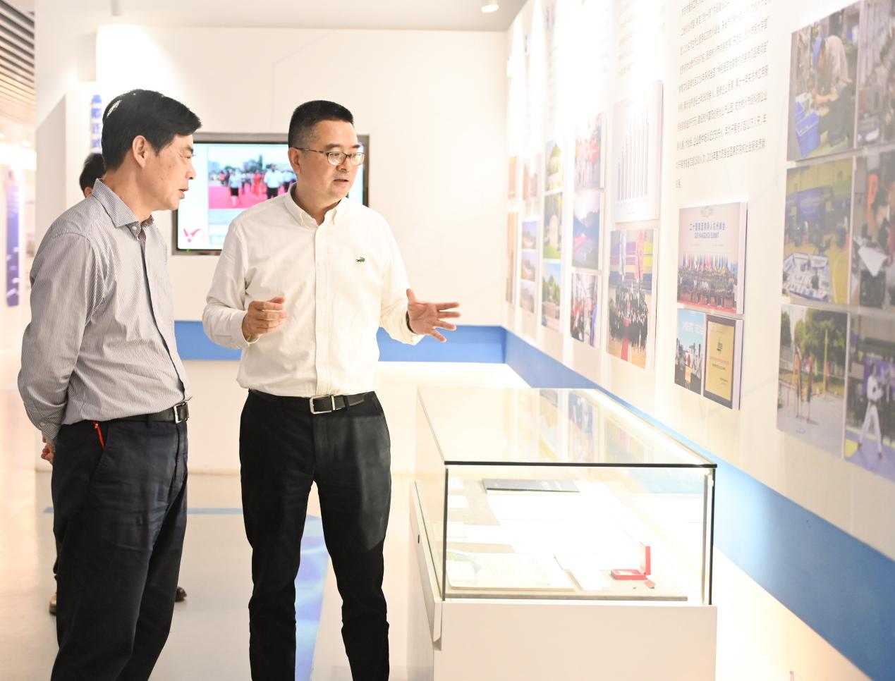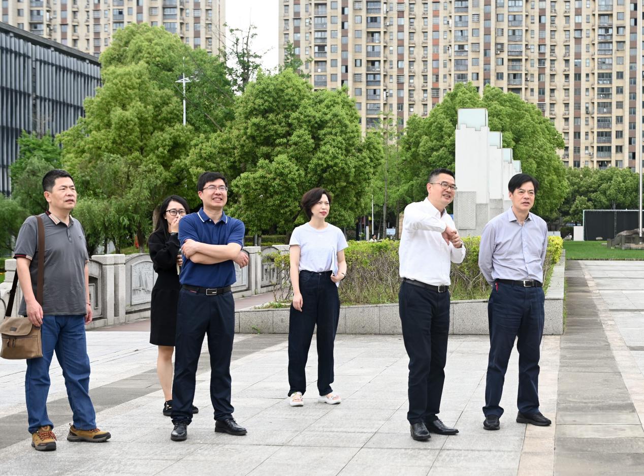 华德法一行调研参观了我校校园中轴线文化景观带、校史馆、杭州陶行知研究馆,听取了工作汇报。华德法高度肯定我校在内涵建设、教育管理、文化建设、师资建设等方面的优秀成果,并对学校统筹部署、扎实推进主题教育表示充分认可,“杭科院主题教育务实有效,成果部分显现”。他表示学校工作积极主动,在学校形成良好学习氛围;谋划细致周到,推进“大走访大调研大服务大解题”有力有序,为主题教育走深走实提供良好基础;突出问题导向,紧密结合学校亚运服务、校区建设、专业建设发展等实际工作展现作为。华德法希望学校进一步抓实学习质量,积极开展集中学习、集中讨论、读书班等学习形式,“切实做到读原著、学原文、悟原理”;进一步抓实调查研究,务必围绕“如何解决师生所急所想”推进工作入深入细;进一步抓实服务保障,以主题教育夯实思想和工作开展,高标准服务好亚运会等中心工作,助力杭州城市经济建设;进一步抓实检视整改,做到即知即改、立行立改。