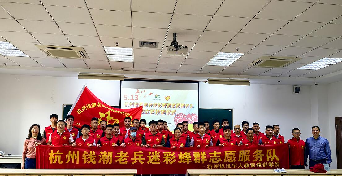 5月13日,继续教育学院举行“钱潮老兵迷彩蜂群志愿服务队”成立暨授旗仪式,继续教育学院相关负责人出席仪式。