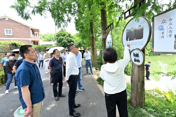 小古城村是余杭区级文明村、生态村、文化村、安全村。2005年,时任浙江省委书记的习近平在小古城村调研时提出“以加强基层民主法治建设,服务好‘三农’”等指导性要求。现场学习中,大家重温习近平总书记“众人的事情由众人商量”的协商民主理念,在悬挂着“樟树下议事”字牌的百年香樟树下,体悟小古城村“四议六步”工作法打造美丽乡村的真招实效。各党总支、直属党支部书记表示,要在日常工作中生动融入“依靠全体村民的力量、发挥众人的智慧来谋发展”的精神,提高政治站位,加强制度建设,打造特色党建品牌,团结广大群众紧紧凝聚在党的周围。
