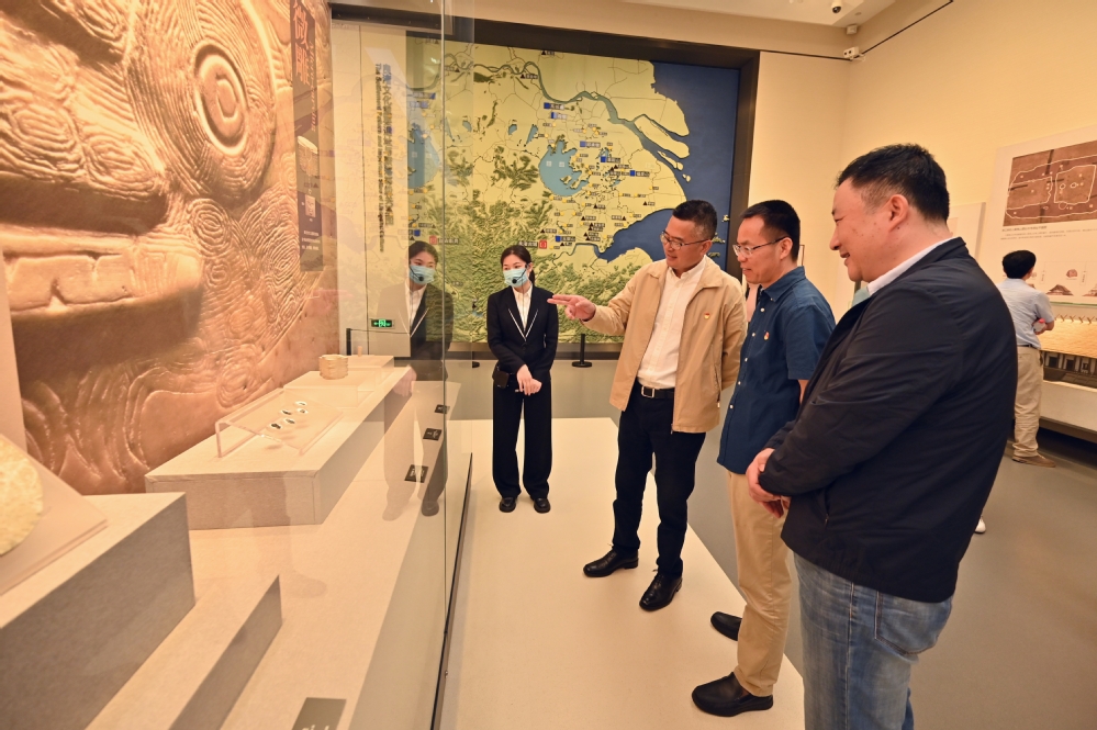 良渚是实证中华五千年文明史的圣地,习近平总书记始终高度重视良渚遗址保护和申遗工作,多次前往良渚调研,并就良渚遗址的保护和申遗工作作出重要指示。读书班成员依次参观了“水乡泽国”“文明圣地”“玉魂国魂”三个展厅,全面了解良渚遗址和良渚文化的考古成果和遗产价值。成员们表示,参观良渚博物馆不仅深入了解了中华民族五千年的悠长历史文脉,更极大地增强了文化自觉,坚定了文化自信。要充分发挥身边的文化资源优势,把“让文物‘活’起来”的理念带到校园文化建设中,引导学生在文化熏陶中坚定理想信念,知校爱校荣校。