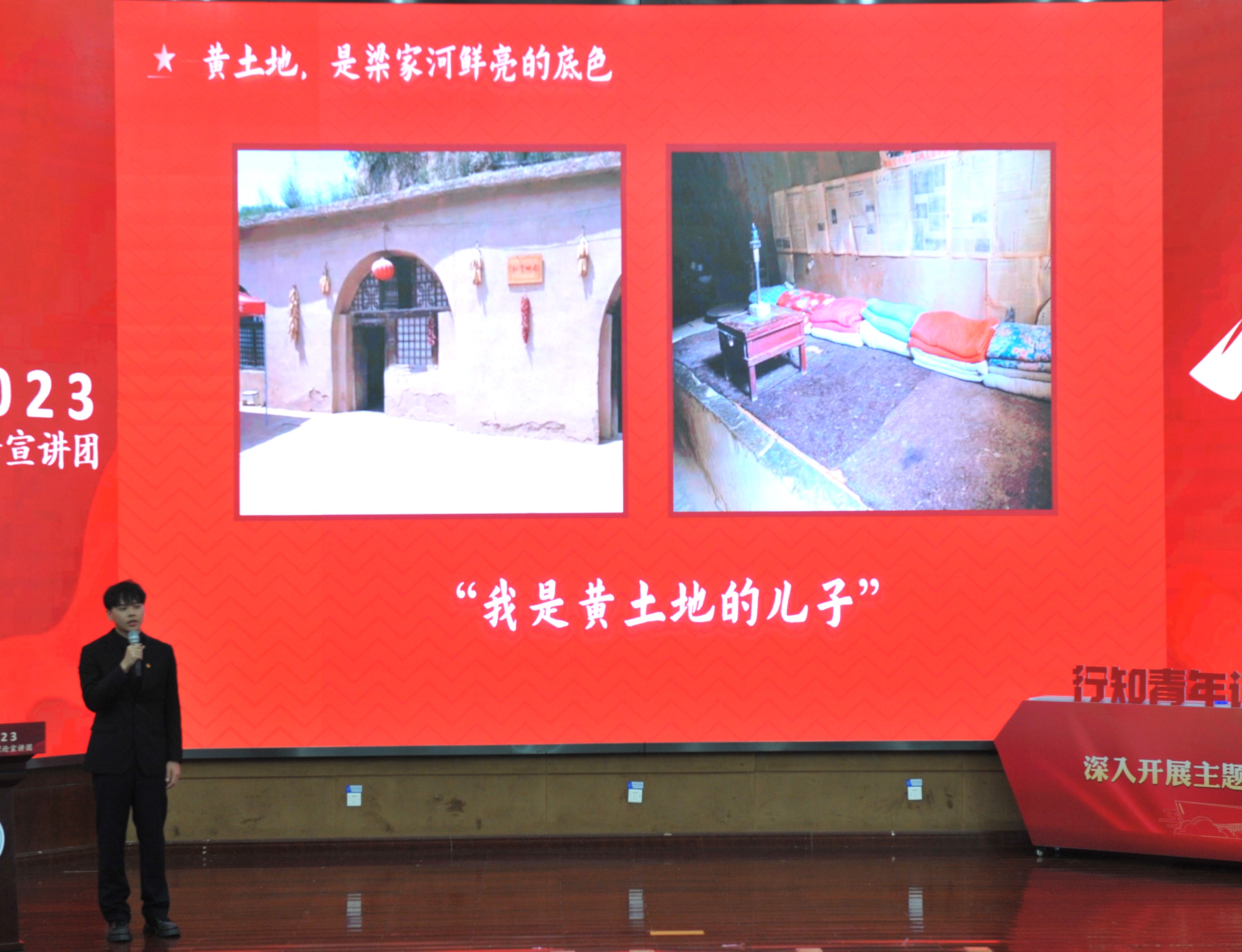 “你从梁家河走来,从梁家河贫瘠而厚重的黄土地中走来,从梁家河简陋而深情的窑洞走来”,四位同学现场朗诵的《你从梁家河走来》带领我们一起追随习近平总书记的足迹,深入了解青年习近平艰苦奋斗的知青岁月。