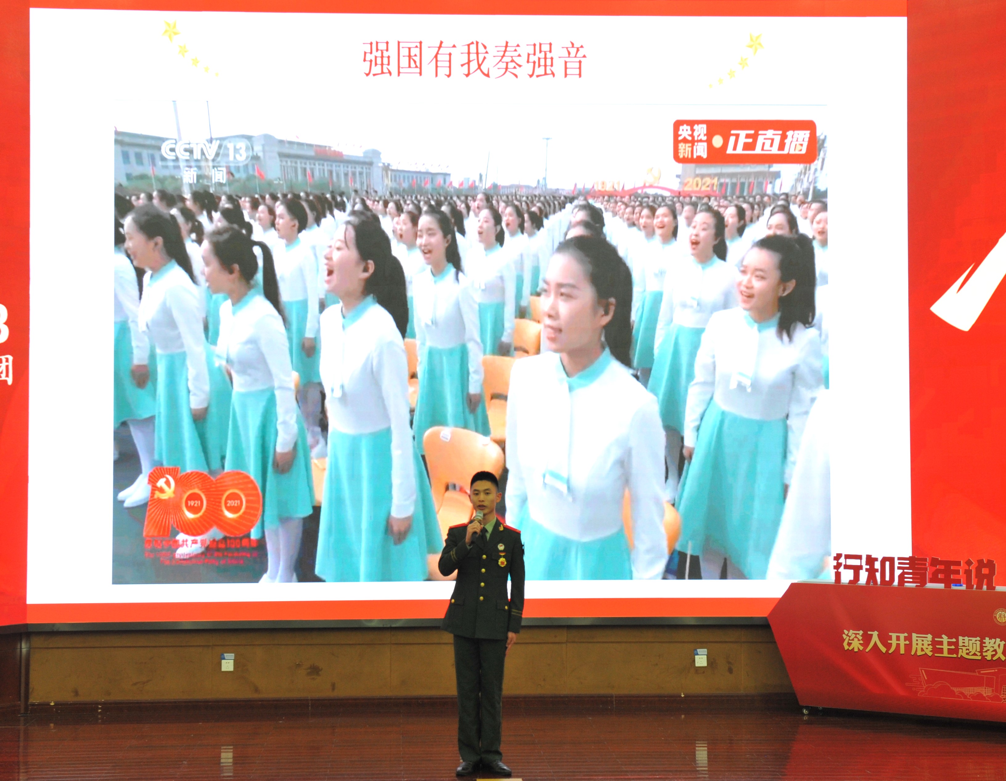 在“行知青年说一一小先生讲党课”第一场活动上,“小先生”盛雨涛的《三套绿军装 同一中国梦》讲述了三套绿军装背后的故事,绿军装不仅承载了三代人的青春,更是不同时代下中国梦的延续!