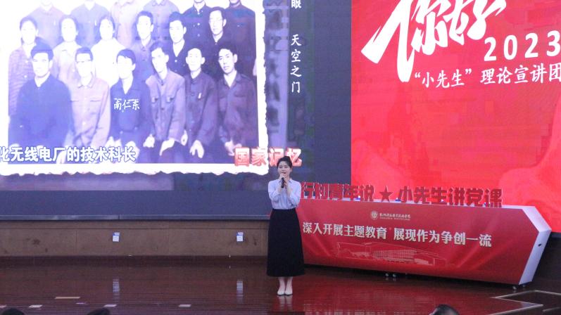 青年教师和富阳青年干部也现场开展了生动的微课宣讲。城市建设学院教师沈碧欢的《看得最远的中国青年》讲述了南仁东与中国天眼500米口径球面射电望远镜背后的故事,以“天眼工程”再次印证了中国青年敢为人先、勇于创新的禀赋和执着忠诚、追求卓越的风骨。