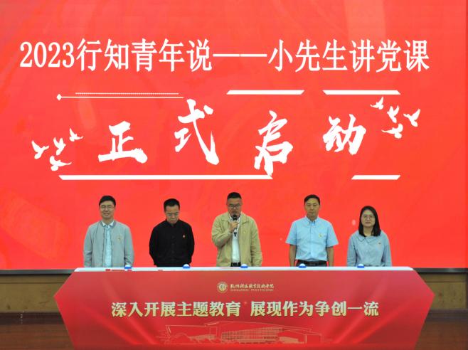 5月23日,我校在图书馆报告厅举行2023“行知青年说一一小先生讲党课”启动仪式暨第一讲活动,党委书记谢列卫、党委副书记寿伟义、党委委员、副校长赵悦林、党委委员、组织部部长朱宝宏、富阳团区委副书记董琳洁出席活动。学校有关职能部门负责人、各二级学院(部)党总支负责人、马克思主义学院负责人、群团组织负责人和各学院师生代表参加。