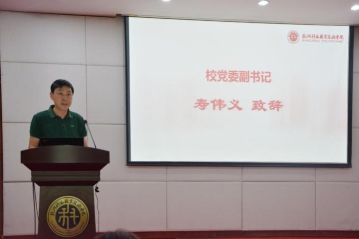寿伟义在比赛现场致辞。他指出,思政课是思想政治教育的主阵地、主渠道,是高校课程体系的“核心课程”。马克思主义学院在思政课建设和改革方面,善用大资源,汇聚大合力,推进思政课程生活化改革,积极探索具有杭科院特色的实践基地现场教学模式。本次教学比赛,既是对我校思政课教师教学能力的检验和展示,更是推动我校思政课教学改革的重要突破,是马克思主义学院充分发挥专业学科优势,在具体工作中贯彻落实党的二十大精神,进一步推进习近平新时代中国特色社会主义思想主题教育走深走实的切实举措。