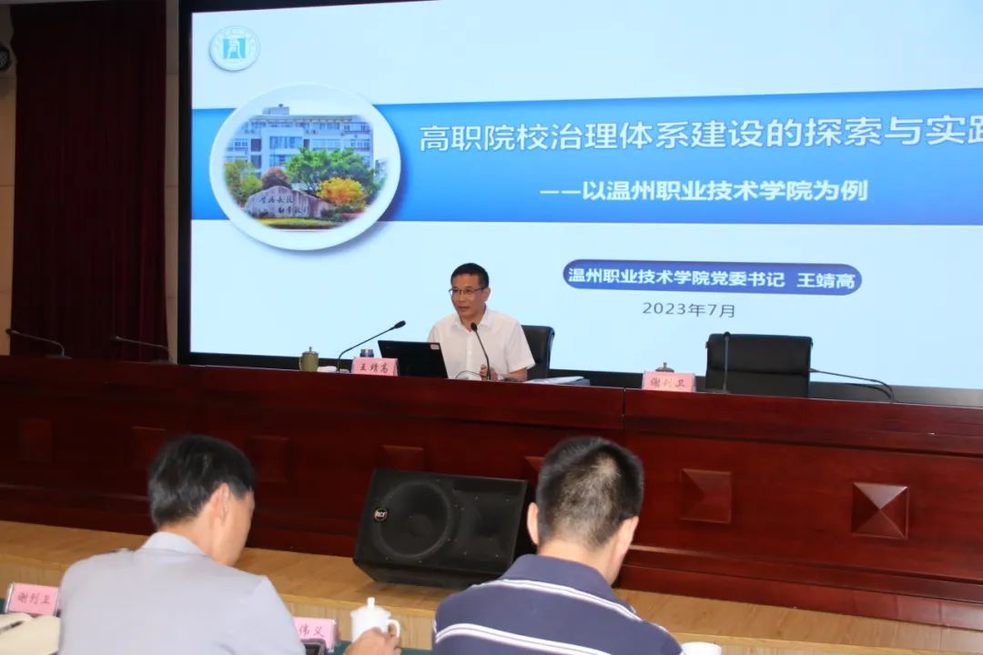 期间,温州市委党校副校长吴道静热烈欢迎杭科院来到温州学习培训,以“历史文化之城”“民营经济之城”“活力开放之城”“改革创新之城”“宜居品质之城”介绍了温州的城市建设和发展情况;温州市委党校讲师童吉鹏作了《重温习近平23次来温足迹,推进“两个先行”》专题报告,带领大家循着习近平总书记的脚步,坚定理想信念,走好“两个先行”新的赶考之路;温州市委党校副教授郑智成以《习近平全面从严治党的重要论述》为题作了专题讲座,深入解读全面从严治党的主要内容、内在逻辑和关键所在;温州职业技术学院党委书记王靖高以温职院为例,详细解读了高职院校治理体系建设的探索与实践,为高职院校实现“高职之制”到“高职之治”提供了先进经验和有益借鉴。
