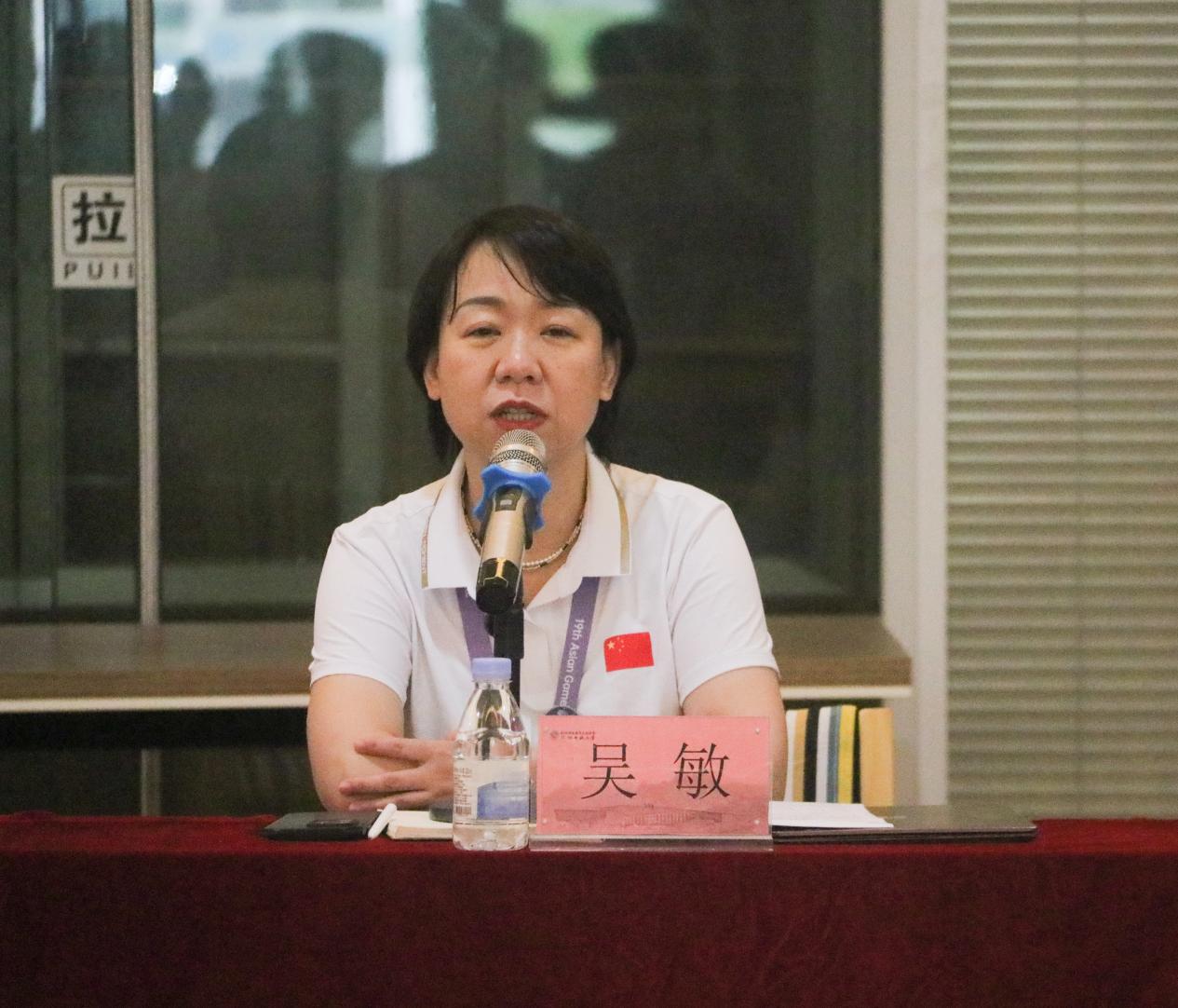 吴敏和张磊高度赞扬了我校为杭州亚运会闭幕式学生群演排练工作作出的积极贡献,并对参加群演排练工作的1272名学生和领队老师表示感谢。吴敏表示,杭州亚运会闭幕式群演排练工作时间紧任务重,高强度的训练需要同学们为这场重大的国家任务作出更大的付出与奉献。杭科院学子高度的荣誉感和参与感令导演组深受感动,导演组也不会辜负任何一位努力训练的同学,希望领队老师和同学们一起坚持到10月8日杭州亚运会闭幕式演出的那一刻,“共同站在杭州亚运会闭幕式的舞台上,向世界展现杭州学子、浙江青年和新时代中国人的魅力与风采!”