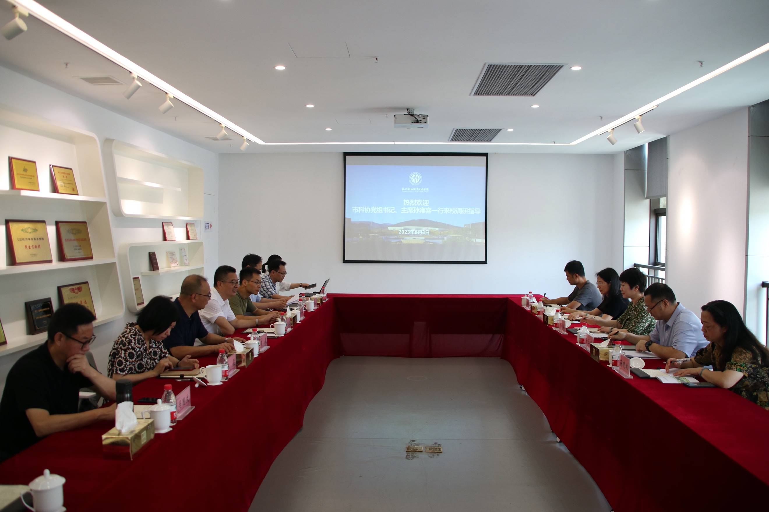 8月3日,杭州市科协党组书记、主席孙雍容一行来我校调研并召开座谈会。党委书记谢列卫、市科协党组成员、二级巡视员鲁玉安,党委委员、副校长袁俊出席会议,市科协科普部、科技工作者服务中心负责人和校办公室、科技处、大江东校区管理办公室、继续教育学院、国有资产管理中心相关负责人参加座谈。