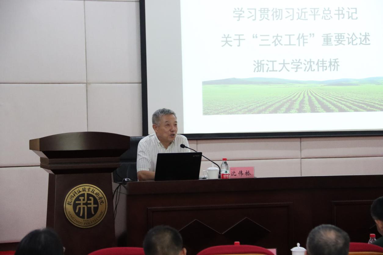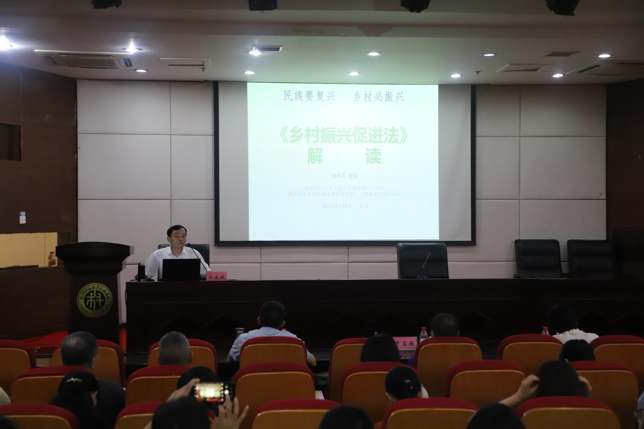 温正胞代表杭科院致辞,对培训班各位学员的到来表示热烈欢迎,并介绍了学校办学历史和办学理念,强调了培训期间的安全事项和纪律要求,希望通过本次专题培训,全面推进杭州的乡村振兴工作。