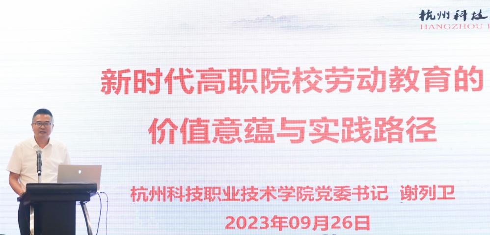 9月26日,由中国教育科学研究院、中国劳动关系学院、杭州市富阳区人民政府联合举办的大中小学劳动教育一体化协同推进论坛在杭州富阳举行。党委书记谢列卫应邀参会,在“大中小学劳动教育实践平台建设与机制创新”分论坛上,作了题为《新时代高职院校劳动教育的价值意蕴和实践路径》的典型经验交流,获得了与会专家、学者的高度评价。