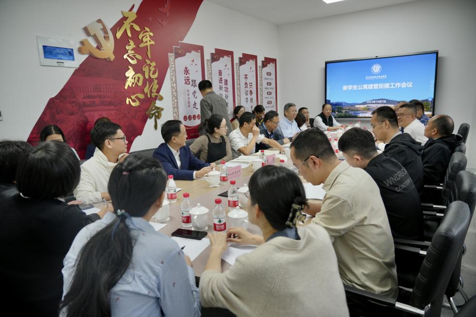 启用仪式结束后,我校在新启用的学生活动中心三楼会议室召开新学生公寓建管衔接工作会议。