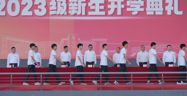 开学典礼在雄壮的国歌声中拉开序幕。校党委书记谢列卫带领全体校领导为新生代表佩戴校徽,祝贺来自全国7个省(自治区)的4958名新生正式开启大学新篇章。