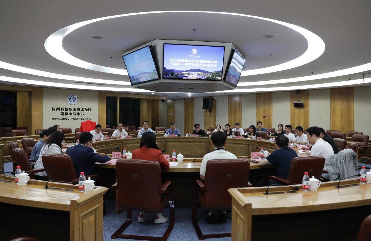 10月27日,“助力嵊泗海岛职教高质量发展中高职一体产教融合联盟”成立大会在我校召开。校长温正胞,党委委员、副校长潘建峰,舟山市嵊泗县教育局副局长贺幼鹏,舟山市嵊泗县职教中心、杭州市富阳区职业教育中心、杭州市旅游职业学校、杭州市中策职业学校、杭州市开元商贸职业学校、杭州市临平商贸职业高级中学等6所中职学校以及阿里巴巴橙点同学职教公益项目、杭州国际博览中心、杭州绿云软件股份有限公司、浙江开元酒店管理股份有限公司等4家企业负责人出席会议。我校教务处、学生处、商务管理学院、旅游管理学院负责人参加会议。