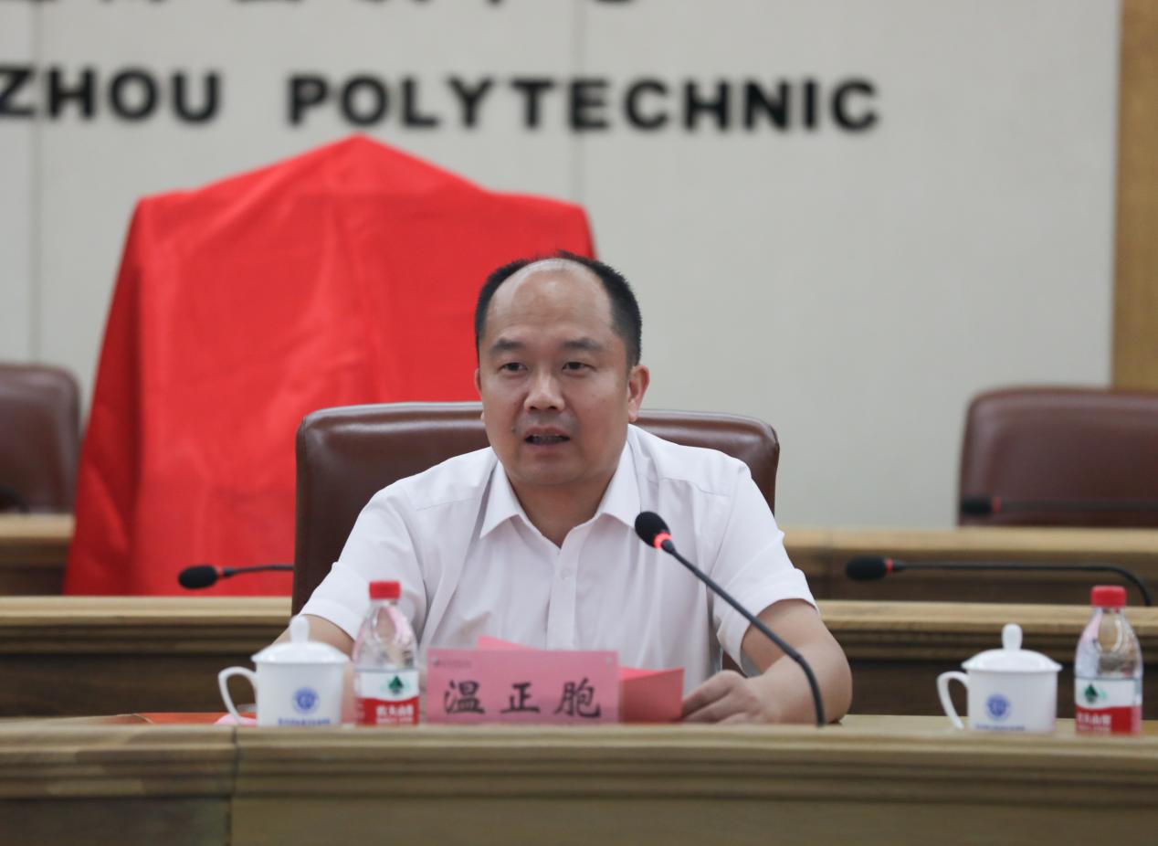 温正胞代表杭科院对各联盟单位成员的到来表示热烈欢迎。他介绍了自己在嵊泗县的挂职经历、我校与嵊泗县在电子商务和酒店管理与数字化运营两个专业的合作情况和“助力嵊泗海岛职教高质量发展中高职一体产教融合联盟”成立的背景与意义。“职业教育是建设教育强国的重要一极,连接的是产业升级,助力的是经济发展。产教融合联盟的成立,既是国家发展所需,又是企业发展所盼,更是职业教育发展所求。”温正胞强调,“共同富裕,教育先行”,我校将竭尽全力,做好中高职一体化建设,支持嵊泗县教育高质量发展,强化产教融合助力海岛共同富裕特色之路,“为嵊泗海岛职教高质量发展插上加速的‘翅膀’!”