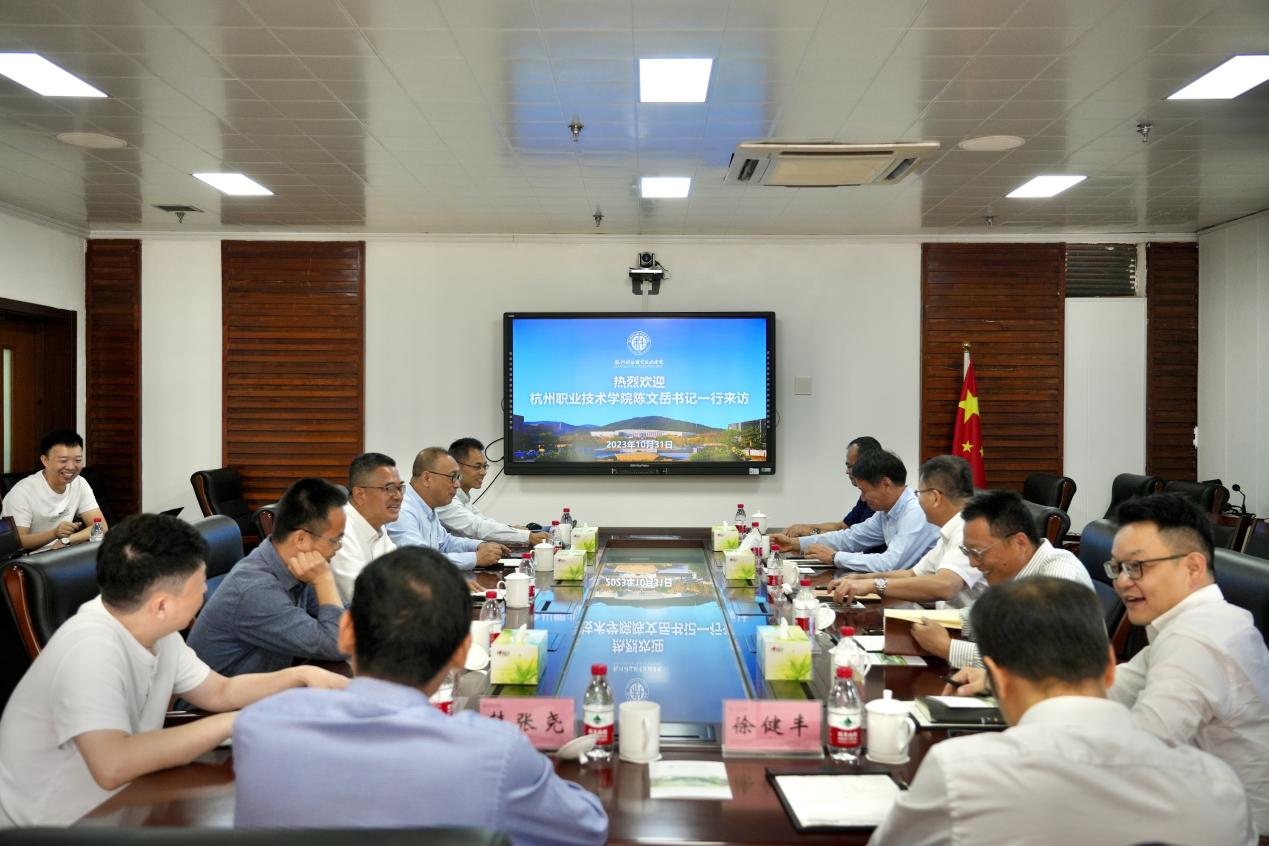 谢列卫代表学校对陈文岳一行的来访表示热烈欢迎,并从学脉渊源、办学规模、内部治理体系建设等方面介绍了杭科院的基本情况。他表示,杭职院与杭科院同为杭州市属高职院校,两所学校的高职办学渊源紧密相连,杭职院起步早、发展快,在内涵建设、专业队伍建设和内部治理体系建设等方面为杭科院筹建高职办学提供了帮助。“两校将在市委市政府的大力支持下,不断加深交流合作,共同为杭州地方经济社会发展贡献高职力量。”