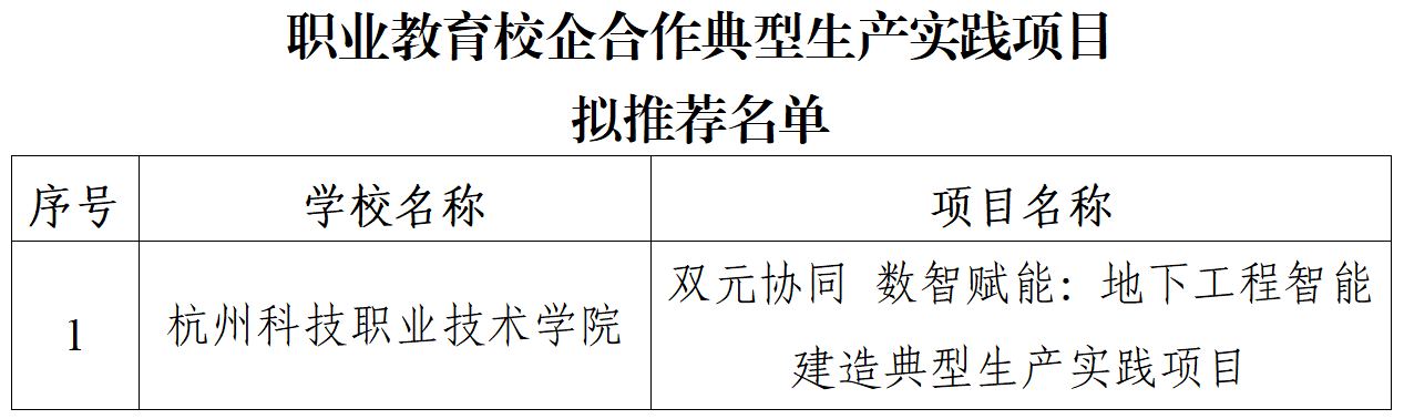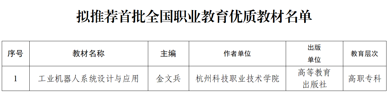 近日,浙江省教育厅公布了《关于浙江省拟推荐首批全国职业教育优质教材名单的公示》《浙江省2023年职业教育一流核心课程等三类项目拟推荐名单公示》等多个现代职业教育体系建设改革重点任务遴选结果,我校3个项目获得推荐,获推项目数量和类型均居省内高职院校前列。物联网技术学院《工业机器人系统设计与应用》获推“首批全国职业教育优质教材”、城市建设学院《双元协同 数智赋能:地下工程智能建造典型生产实践项目》获推“职业教育校企合作典型生产实践项目”、智能制造学院《智能制造“亚龙YL-569”型教学装备》获推“具有国际影响力的职业教育装备项目”。