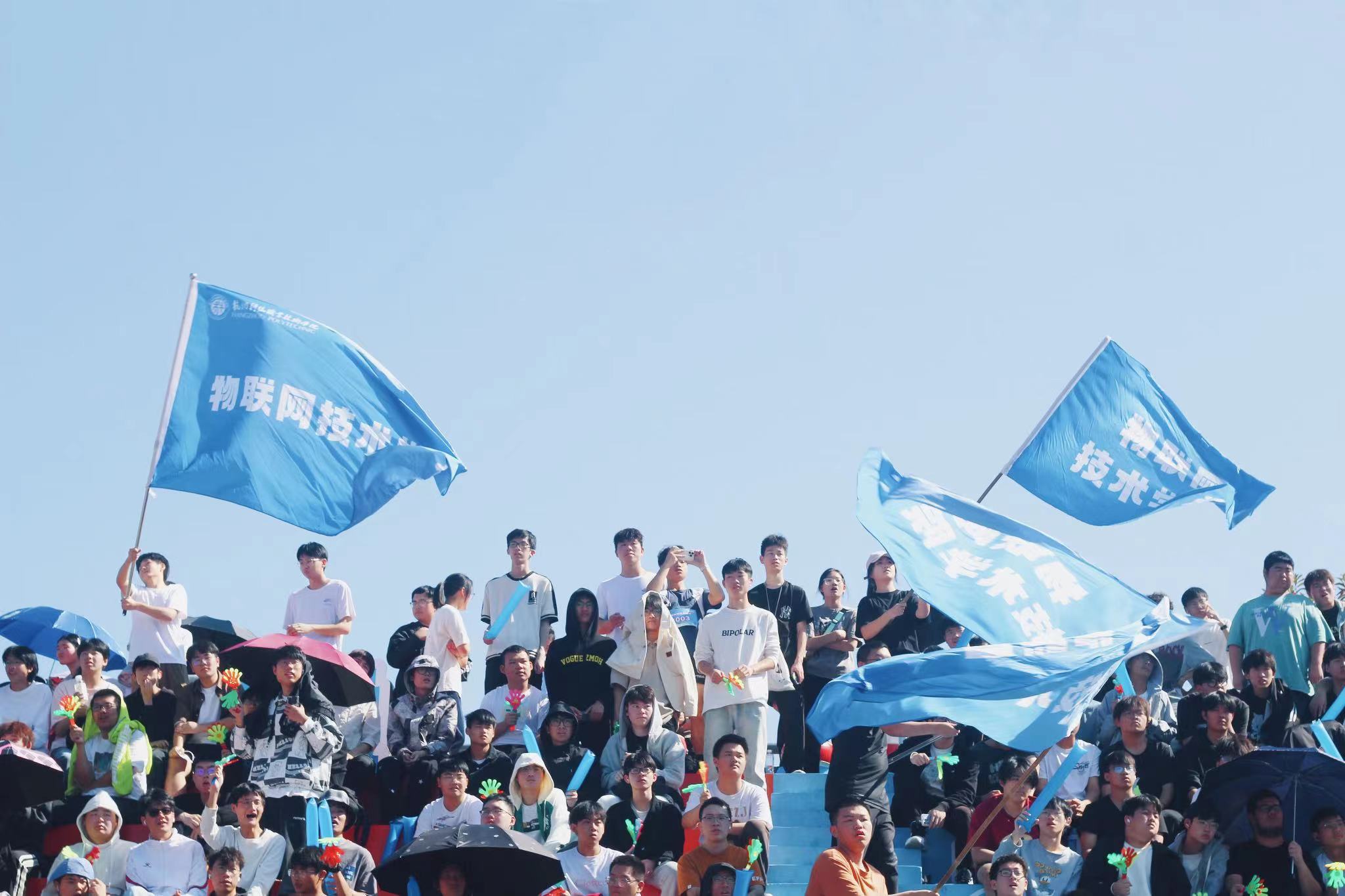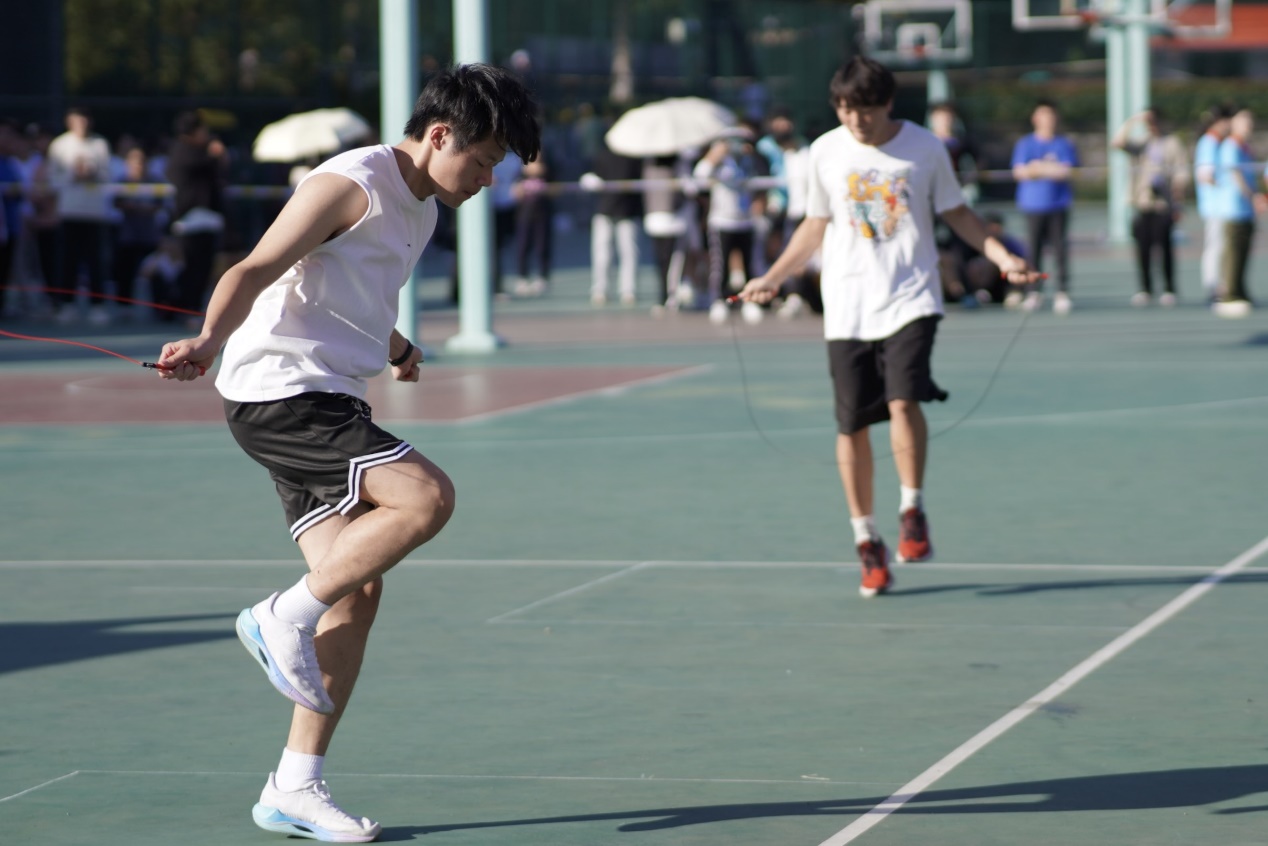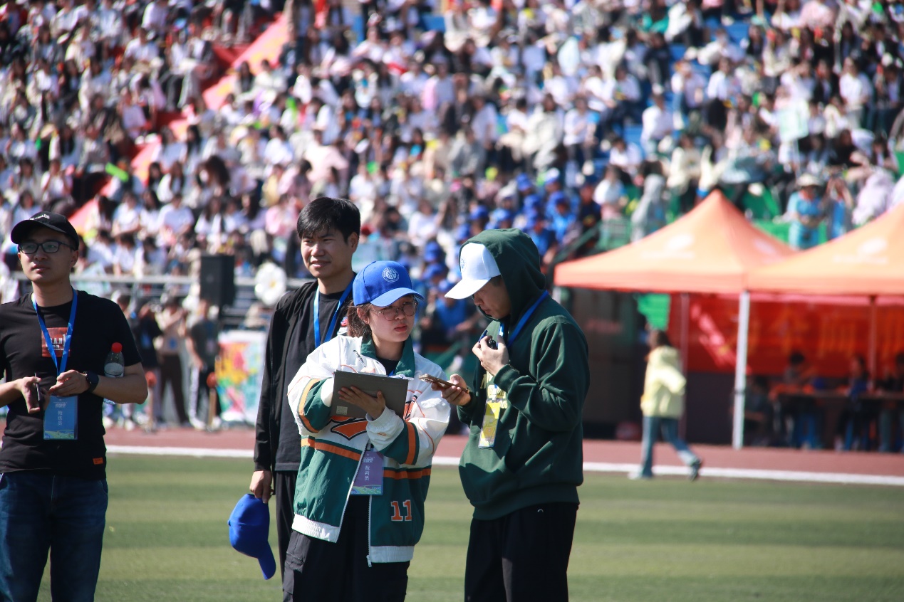 开幕式结束后,物联网技术学院、汽车工程学院和学前教育学院的团体操表演和各学生代表队的广播操比赛先后进行。朝气蓬勃的面庞、整齐划一的动作将杭州亚运会的精神内核与体育运动的活力注入了本届校运会。