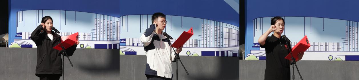 学生运动员代表林佩瑶、教工运动员代表栾志强、裁判员代表李秋燕分别进行赛前宣誓。