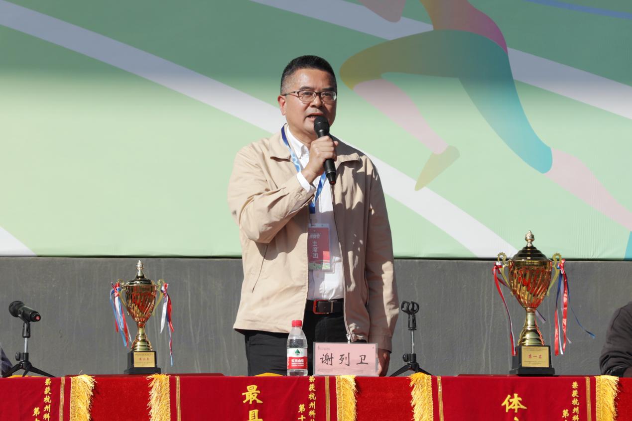 党委副书记、体委主任寿伟义致开幕词。他表示,本届运动会是在杭州亚运会、亚残运会精彩落幕后的一次盛会,是学校展示体育教学成果、体育竞技成绩和群众性体育水平的一次盛会,是学校通过竞技体育增添发展新活力、凝聚发展新动力的一次盛会。2023年是学校新一轮“创一流”内涵建设启动之年,也是学校“十四五”事业发展规划承前启后的重要一年。在学校事业发展的关键时刻,全校师生要以饱满的精神状态和昂扬的斗志,共同弘扬体育道德风尚,“让自强不息的体育精神在学校‘创一流’的建设中得到全面发扬!”