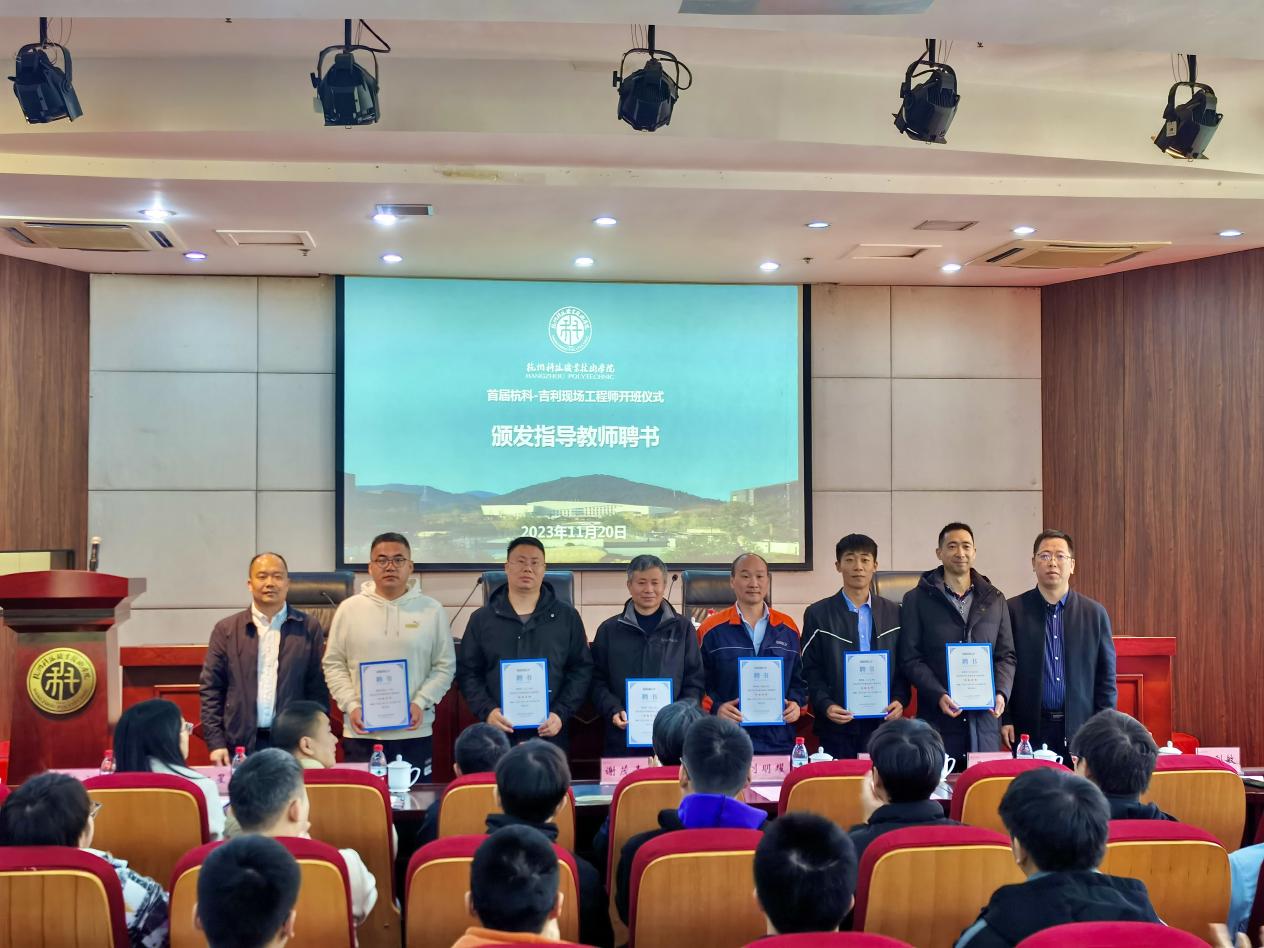 开班仪式上,学校、吉利和学生代表签订了现场工程师项目培养三方协议。教务处副处长董虹星介绍了杭科-吉利现场工程师项目前期开展基本情况。