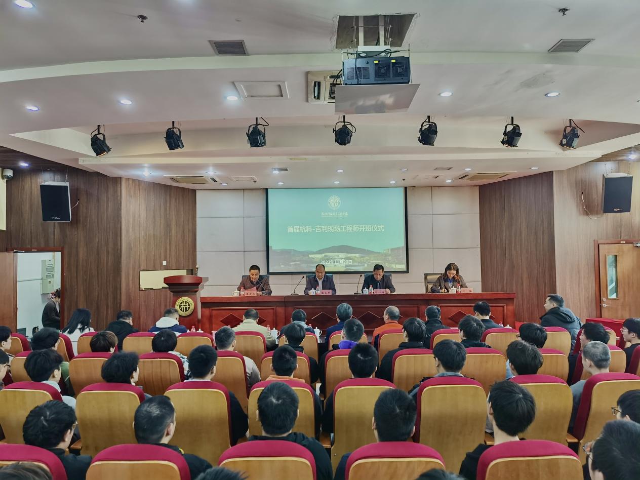 11月20日,我校在陶研馆举办首届杭科-吉利现场工程师开班仪式。校长温正胞,党委委员、副校长潘建峰,浙江吉利汽车控股集团钱塘公司生产制造总监郑祖海,吉利汽车集团人才发展经理刘瑶出席会议,第一届杭科-吉利73位现场工程师班学员,教务处、智能制造学院、汽车工程学院负责人,杭科-吉利现场工程师班任课老师代表参加。开班仪式由潘建峰主持。
