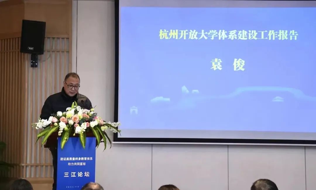 袁俊在会上作杭州开放大学体系建设工作报告,回顾总结了杭州开放大学更名转型以来体系建设的主要工作,提出了开放大学体系建设的思路,明确了工作举措。他表示,杭州开放大学将继续为创建终身教育“杭州模式”“杭州样板”,服务终身教育现代化,打造全国终身教育示范窗口不懈努力。