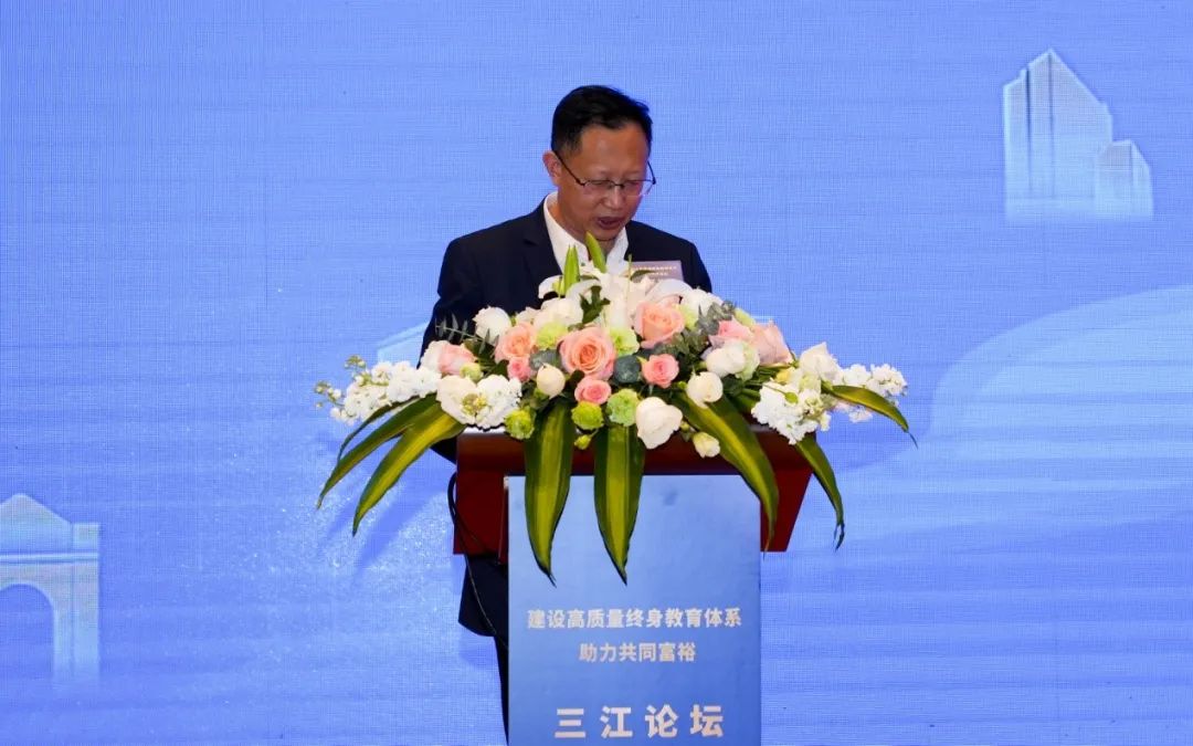 郭清晔对本次论坛的召开及杭州社区大学成立二十周年表示祝贺。他指出,高质量发展建设共同富裕示范区是习近平总书记赋予浙江的光荣使命,“既是重大政治责任,更是新发展阶段的重大历史机遇” 。在助力共同富裕的实践上,杭州开放大学作为杭州市人民政府主办的一所以开放教育为主体、多元办学、多种教育类型协调发展的现代开放大学,始终坚持发挥体系优势,聚焦立德树人,为杭州经济社会发展培养了大批人才,为助力杭州市争当共同富裕示范区城市范例积累了宝贵经验,贡献了巨大力量。