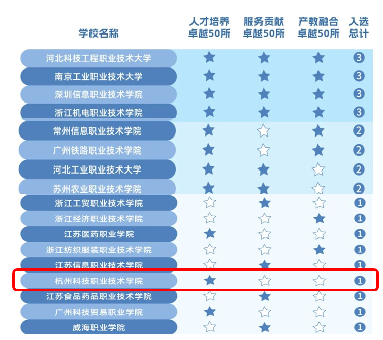 近年来,学校落实立德树人根本任务,坚持服务杭州区域经济发展,走特色发展道路,扎实推进“创一流”内涵建设,推行“四个并重”人才培养体系,着力提升人才培养质量和水平,受到广泛认可。此前,学校曾先后入选2016年全国高等职业院校“服务贡献50强”、2022年入选“全国高职院校教师发展指数100所优秀院校”。