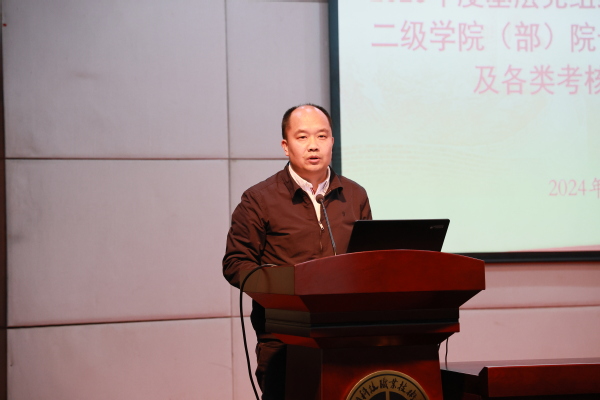 1月11日,2023年度基层党组织书记抓党建述职、二级学院(部)院长(主任)教学述职及各类考核测评工作会在我校陶研馆报告厅举行。校长温正胞对述职评议工作作总结讲话,党委副书记寿伟义对党建述职作点评,党委委员、纪委书记王鹏宇主持会议,党委委员、副校长潘建峰对教学述职作点评,全体校领导出席会议,全体中层干部、教职工考评代表参加。