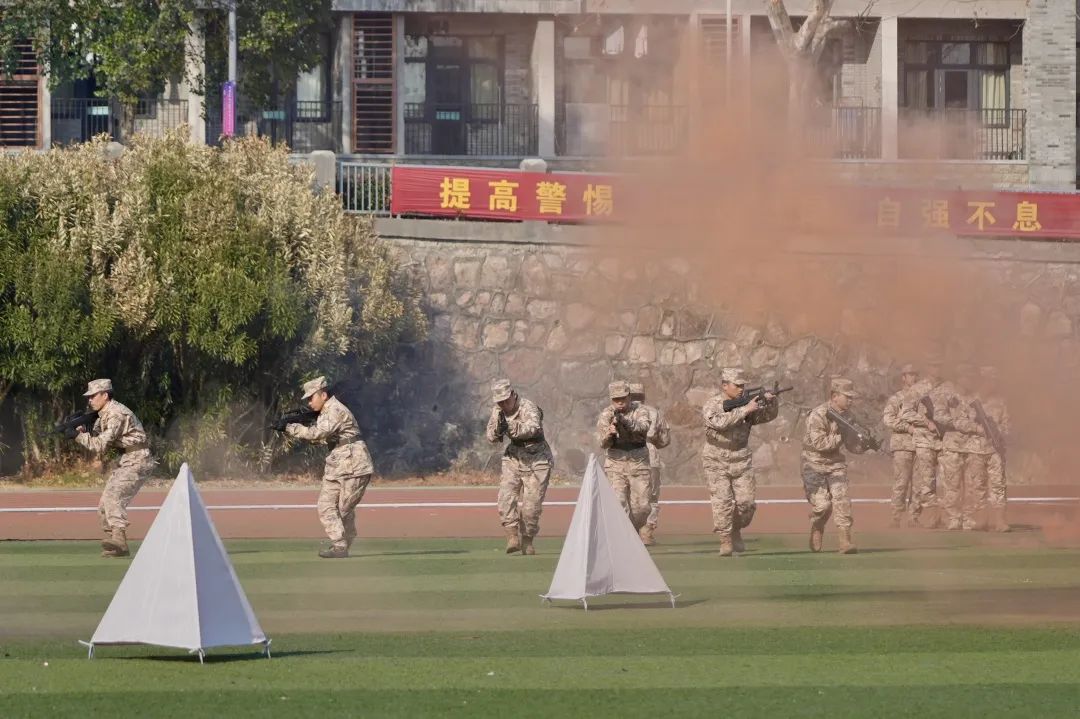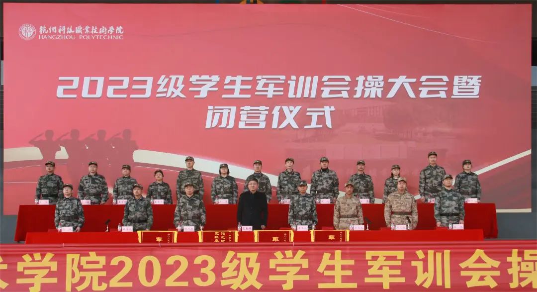 当天上午,寿伟义、赵悦林出席我校严州校区学前教育学院2023级学生军训会操大会暨闭营仪式。八营(学前教育学院)近600名2023级学生进行了精彩的分列式和军体拳表演 。