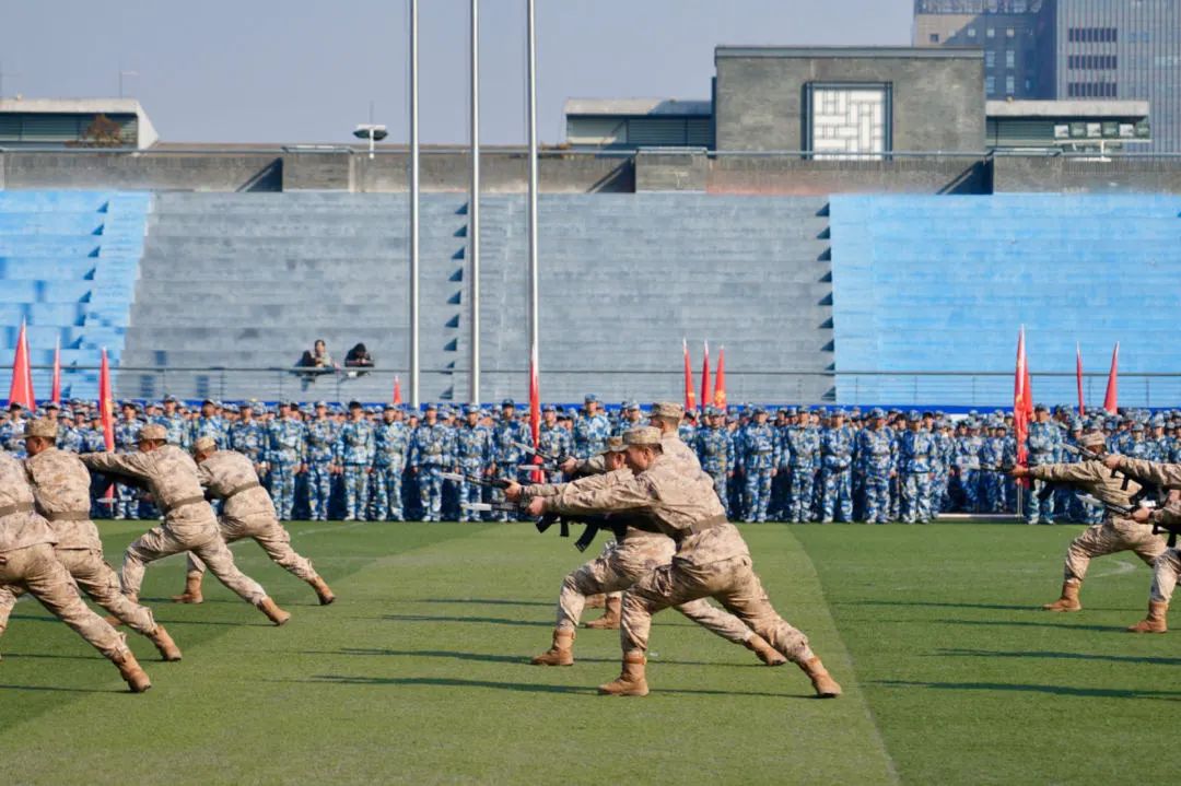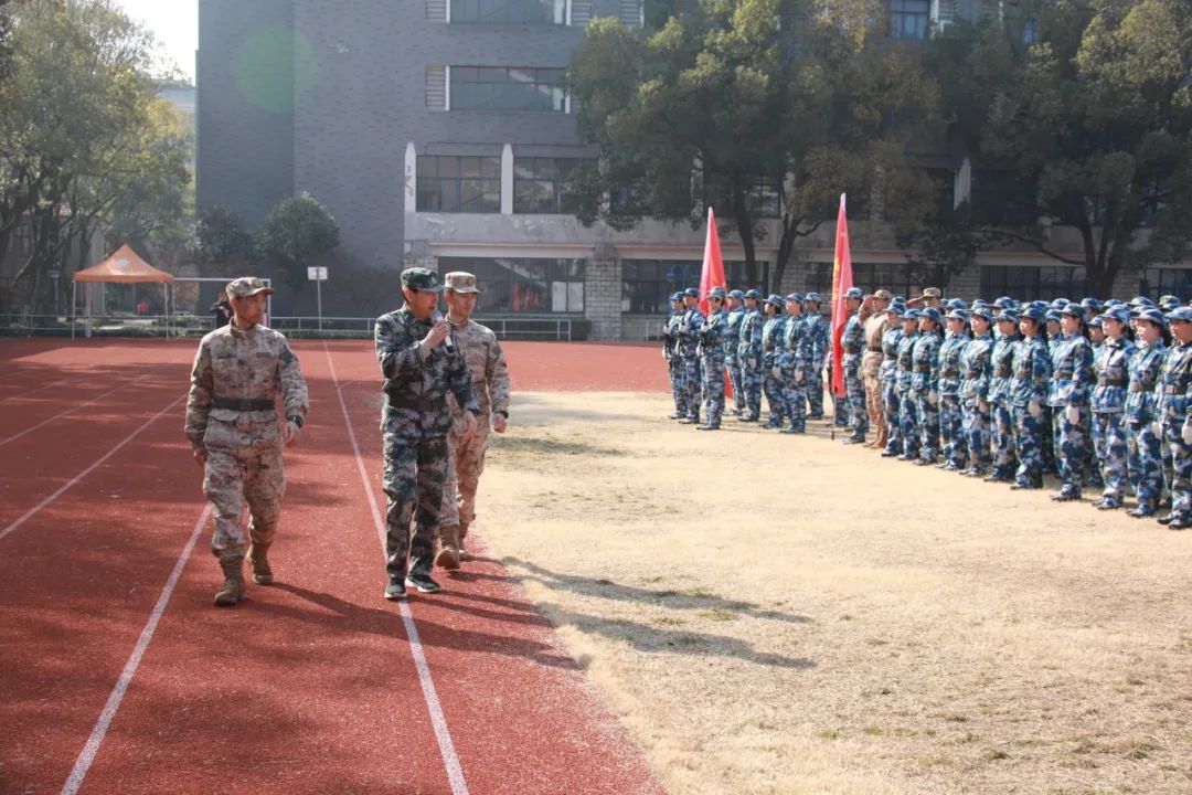 1月28日,我校分别在严州校区和高桥校区举行2023级学生军训会操大会暨闭营仪式。在高桥校区闭营仪式上,党委书记范朝辉问候全体军训学生,并向承训部队中国人民解放军75210部队代表吴克武上校赠送锦旗。党委副书记、军训旅旅长寿伟义主持仪式,党委委员、副校长、军训旅政委赵悦林致闭营词。